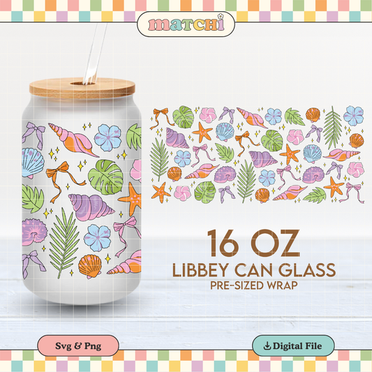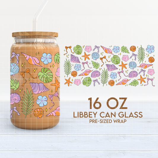 Seashells & Bows | Summer 16oz Cup Wrap PNG SVG