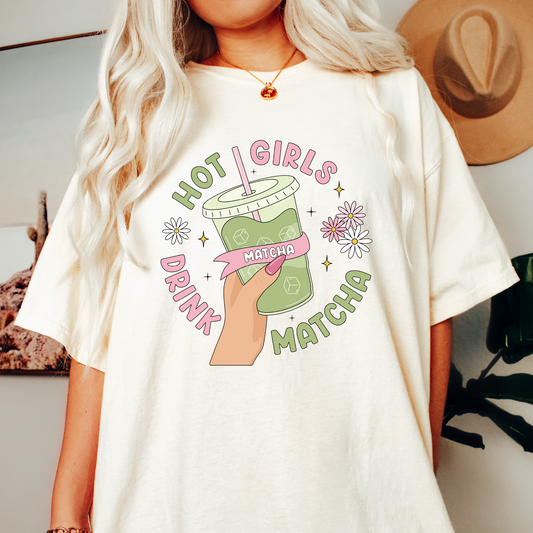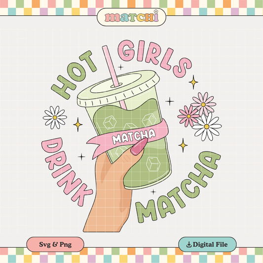 Hot Girls Drink Matcha PNG SVG | Matcha Latte Sublimation | Trendy Tshirt Design