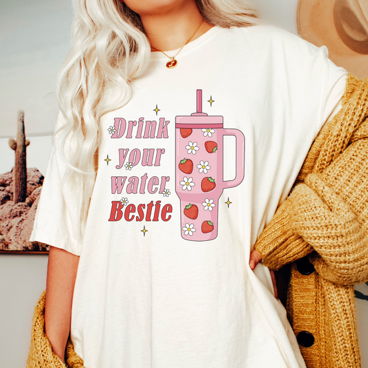 Drink Your Water Bestie PNG SVG | Stanley Cup Sublimation | Trendy Tshirt Design