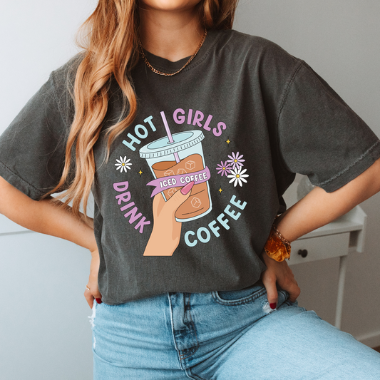 Hot Girls Drink Coffee PNG SVG | Iced Coffee Sublimation | Trendy Tshirt Design