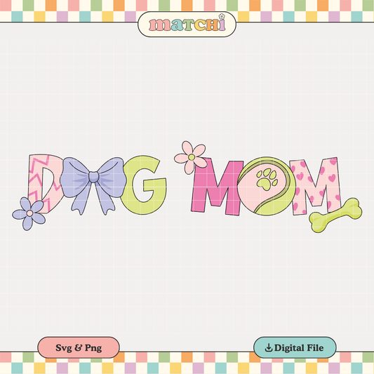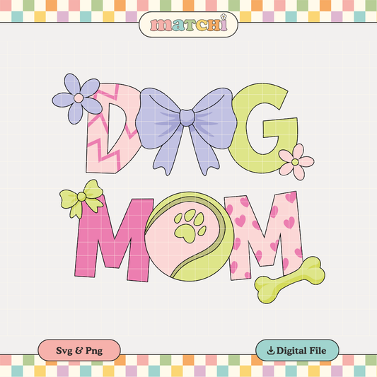 Dog Mom | Ball, Flowers & Bows PNG & SVG