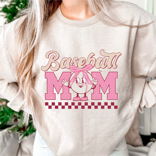Baseball Mom SVG PNG | Coquette Baseball Character Sublimation | Pink Bow Tshirt Design