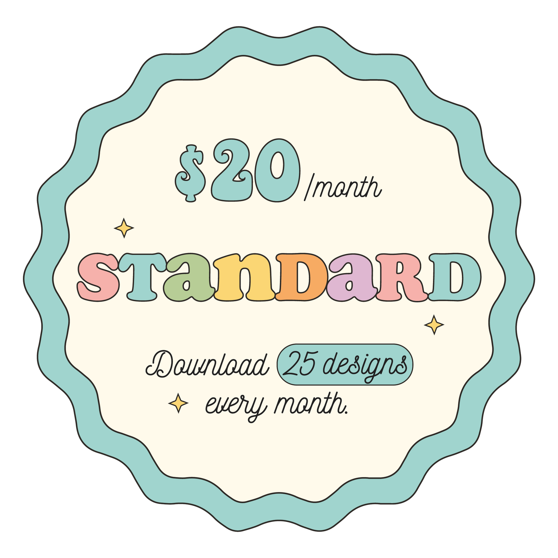 After subscribing, you’ll receive a $112.50 coupon code (25 designs x $4.50) every month to redeem in the shop. A new code will be sent on the 1st of each month.