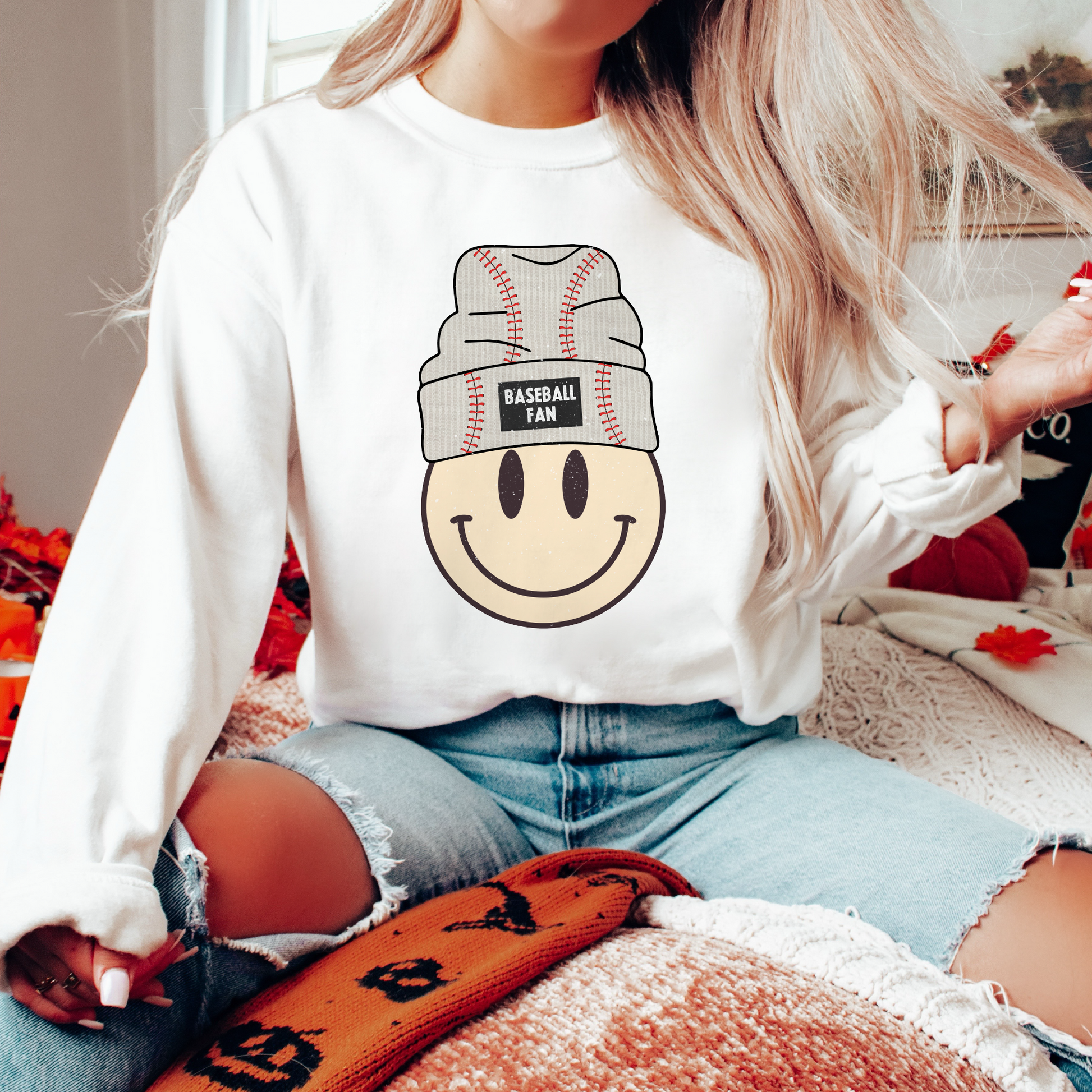 Baseball Beanie Smile PNG | Retro Baseball Fan Sublimation | Groovy T shirt Design