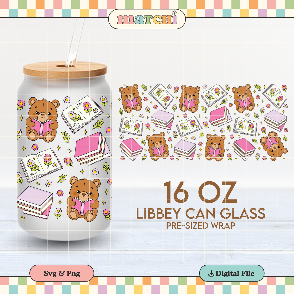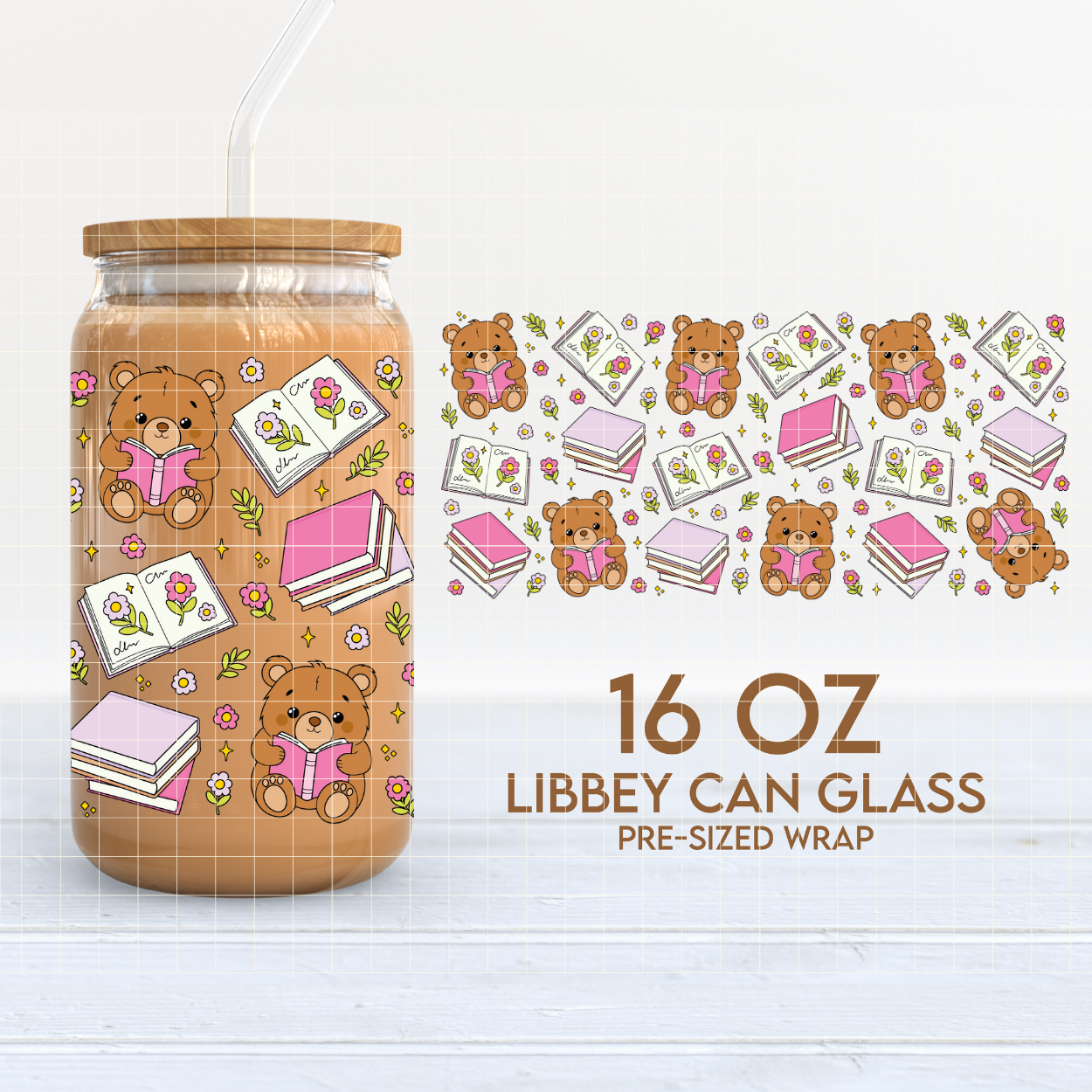 Bookish Teddy | Cute 16oz Cup Wrap PNG SVG