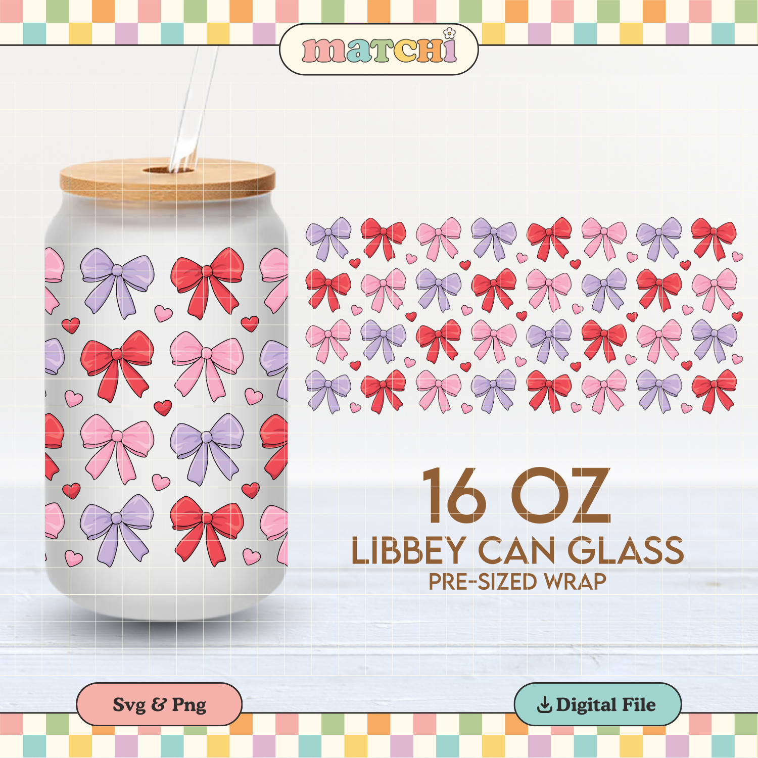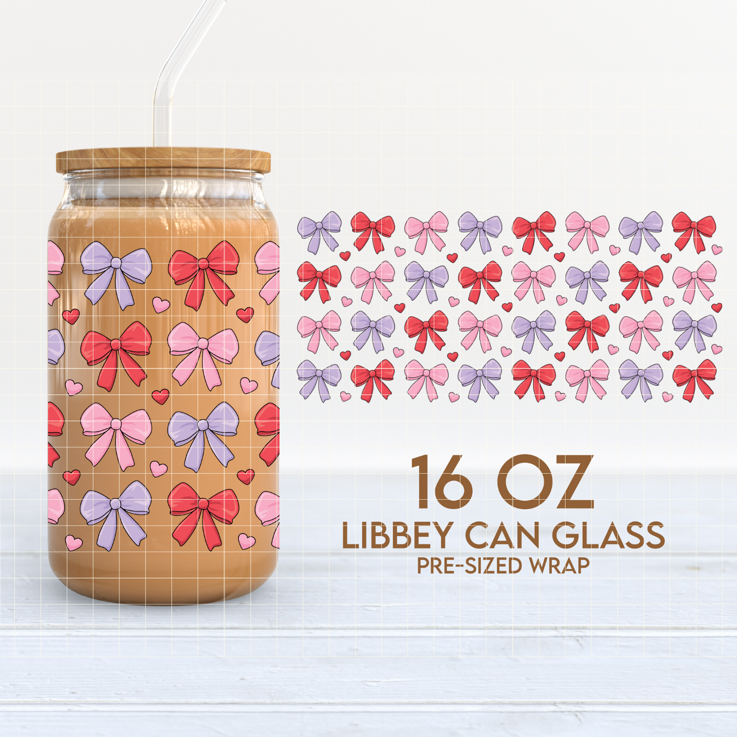 Bows Cup Wrap | Coquette Valentine's 16oz Libbey Can Glass | Girly Bows PNG SVG