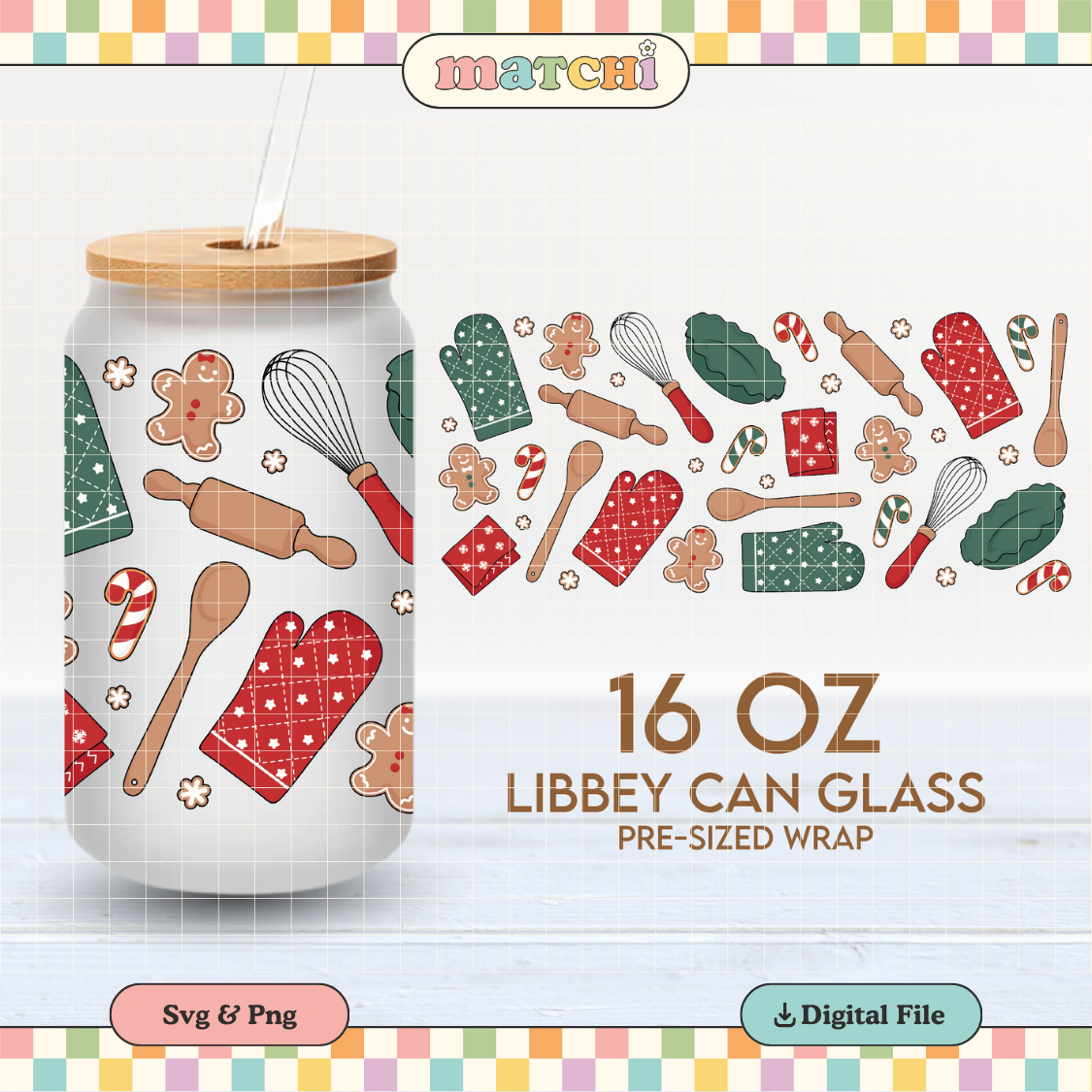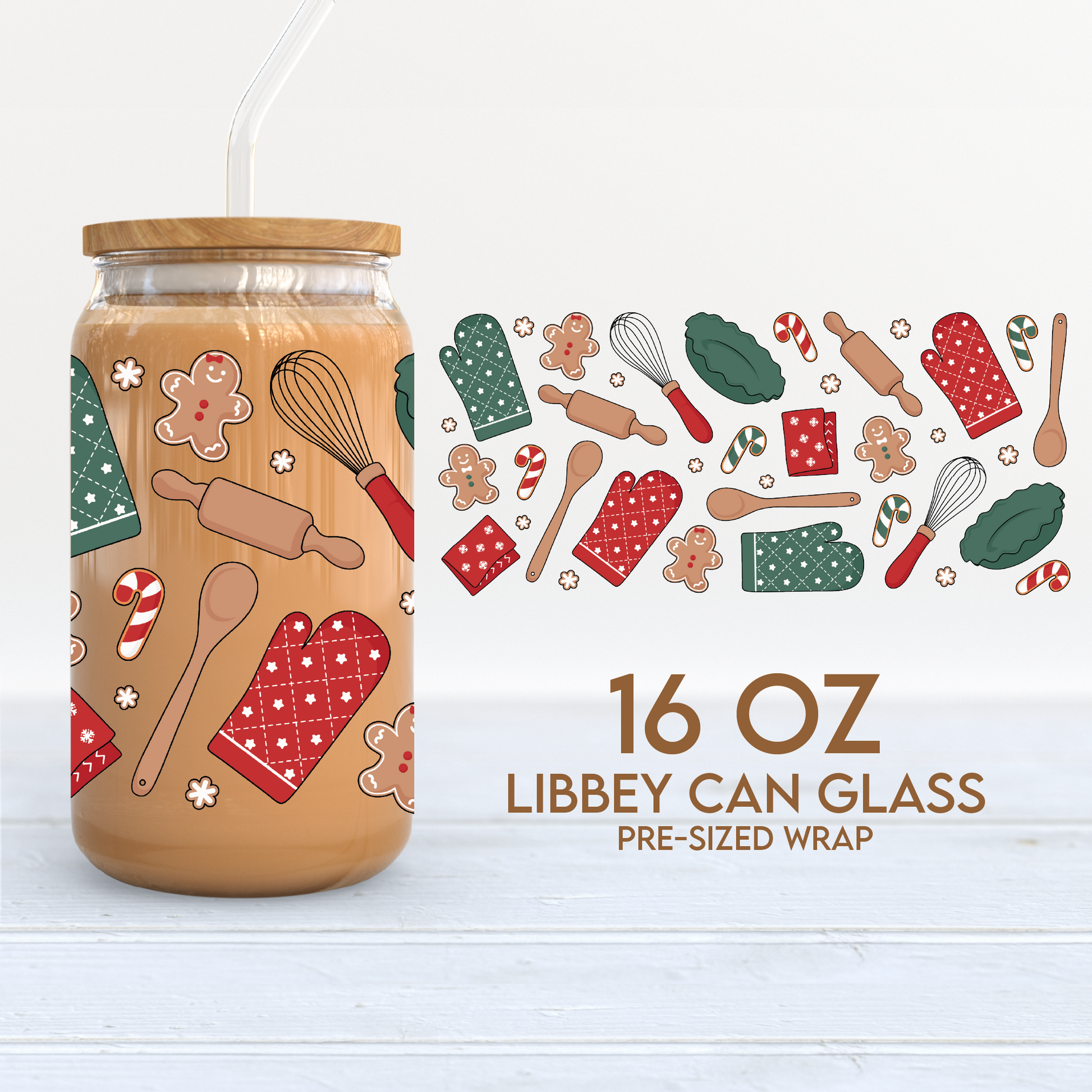 Christmas Baking Cup Wrap | Gingerbread Cookies 16oz Libbey Can Glass | PNG SVG