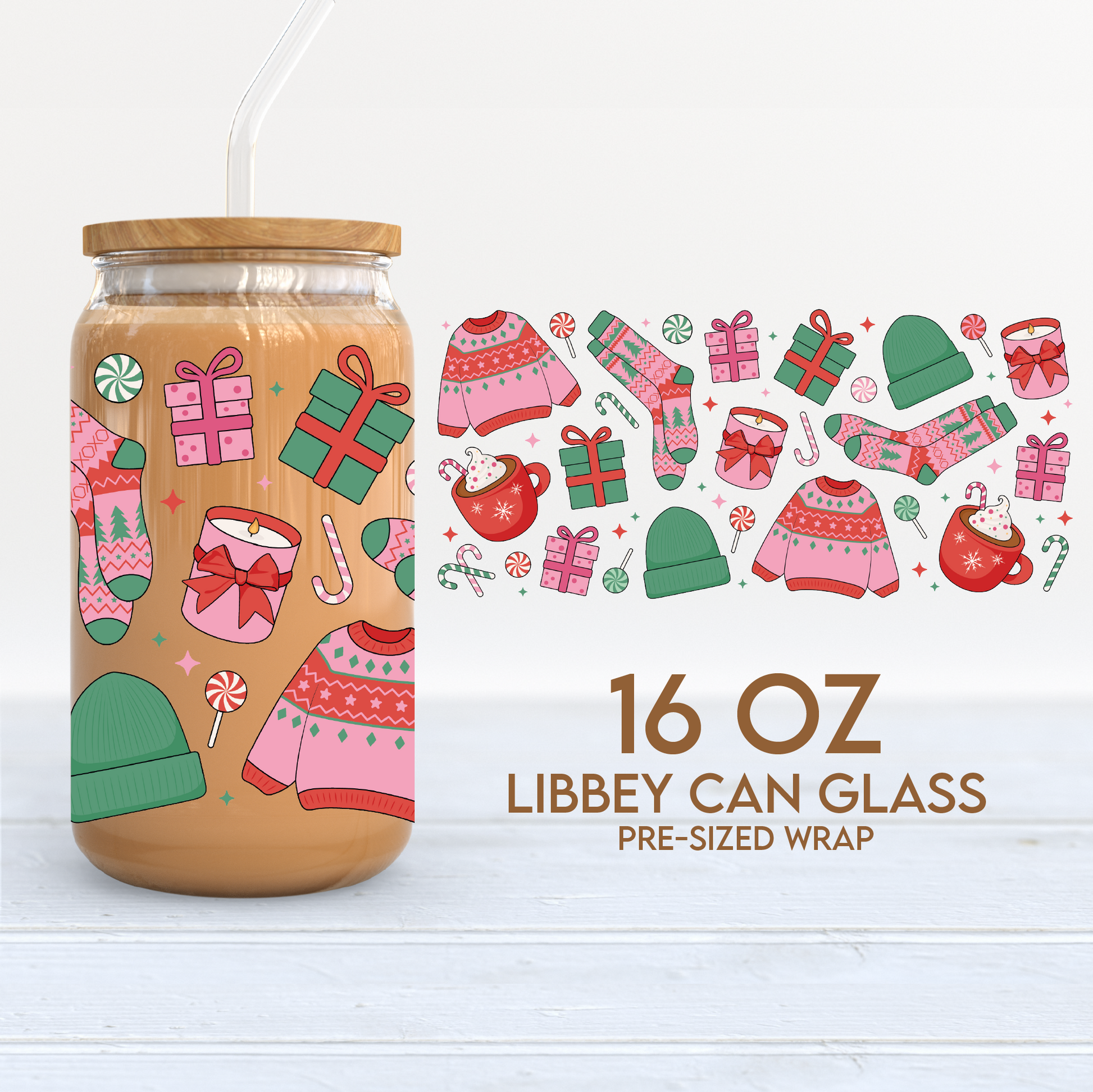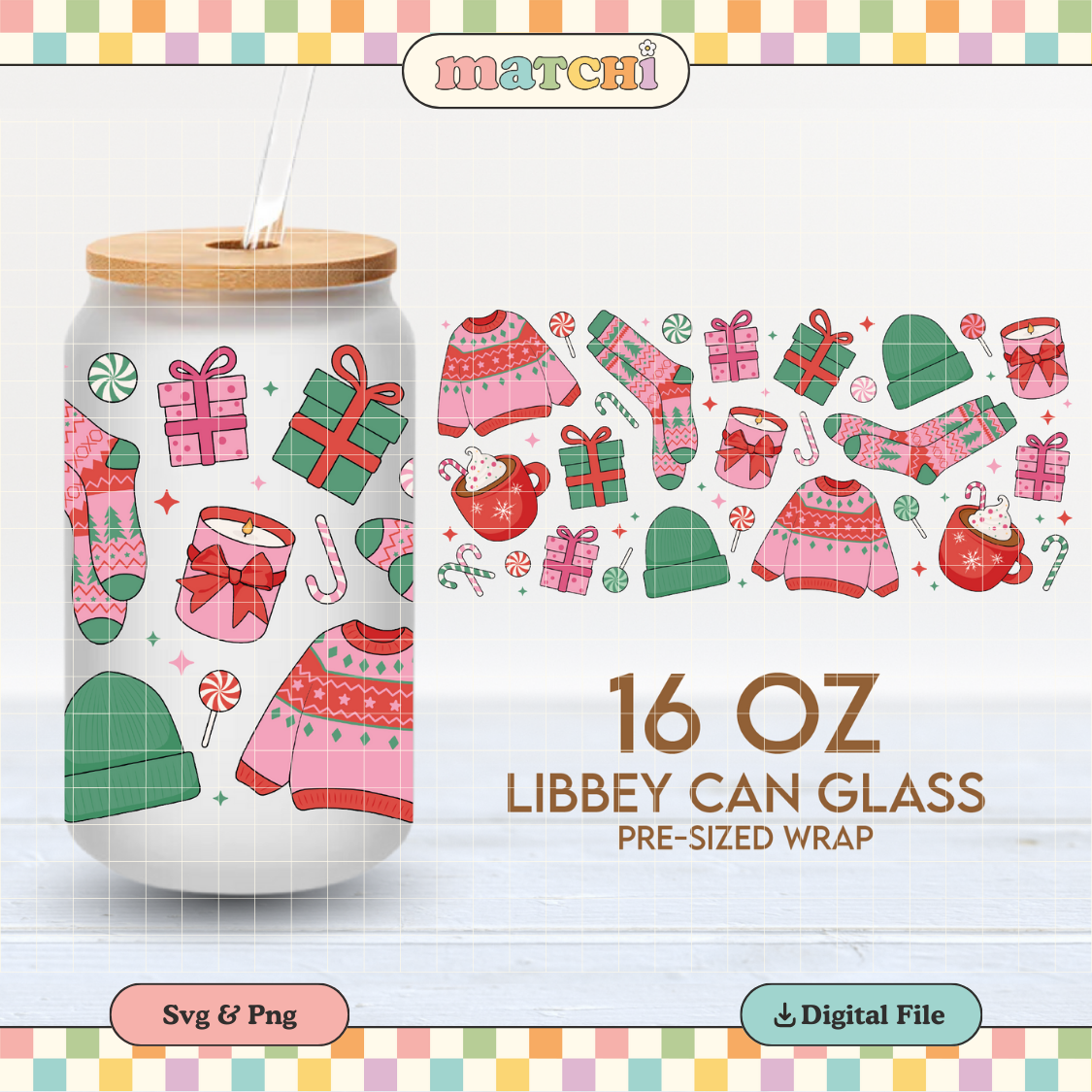 Christmas Girl Cup Wrap | Christmas Sweater 16oz Libbey Can Glass | Xmas PNG SVG
