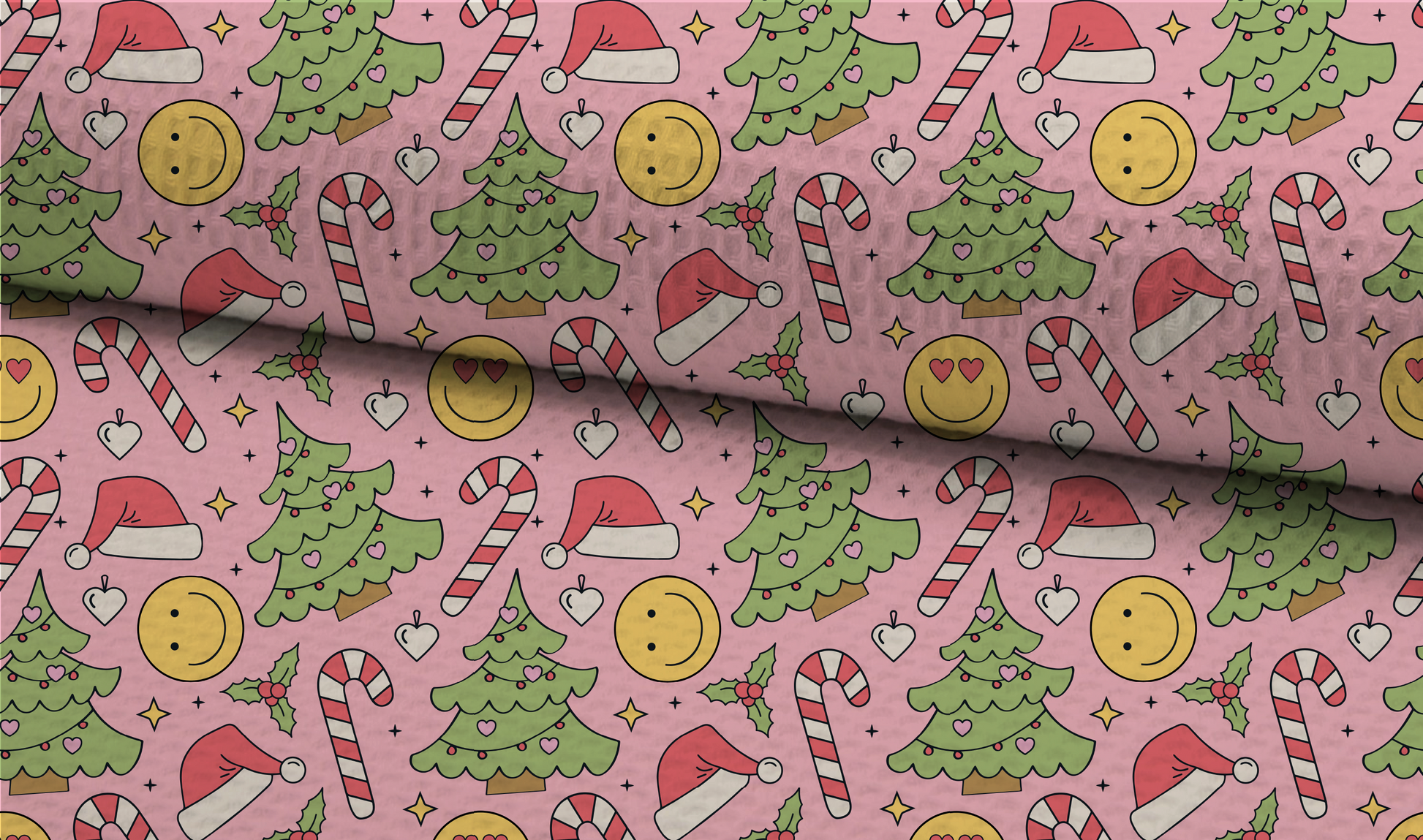 Christmas Groovy Doodles Seamless Pattern, Xmas Pink Pattern for Fabric Sublimation