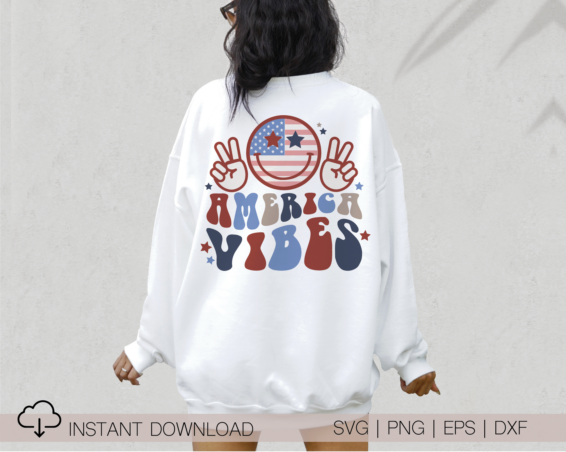 America Vibes SVG PNG | American Smile Face Sublimation | Fourth of July | Retro Vintage T shirt Design