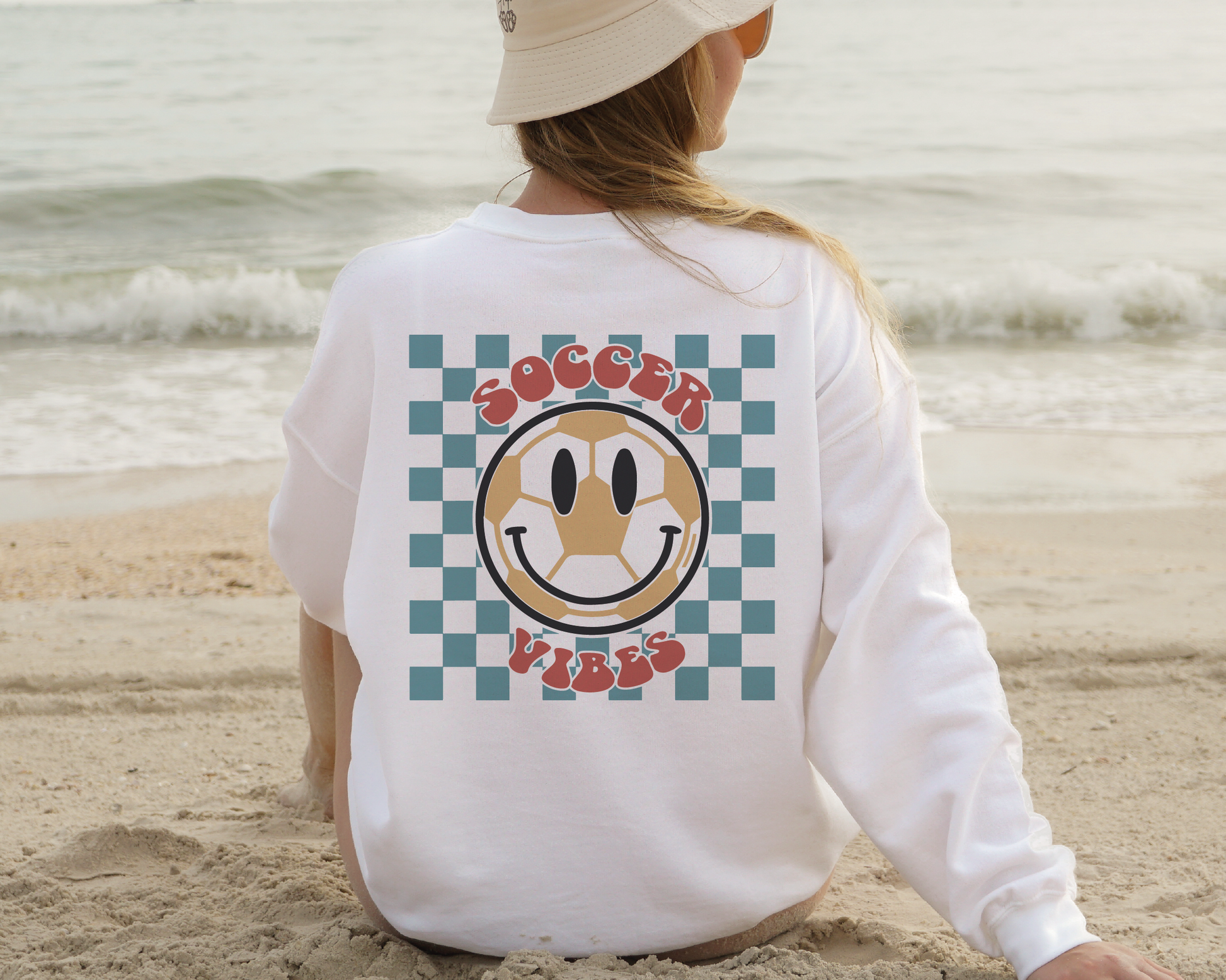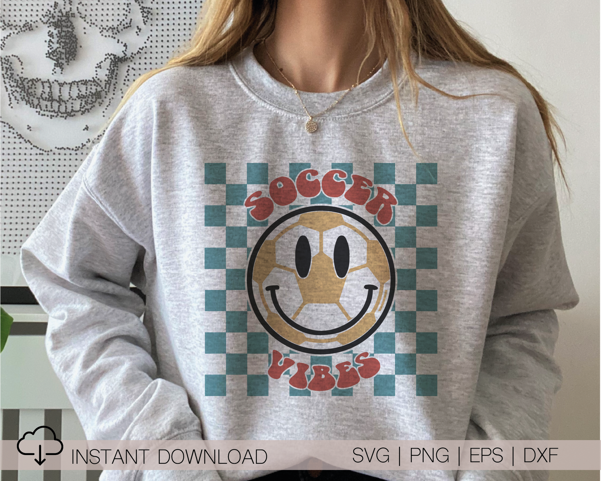 Soccer Vibes SVG PNG | Checkered Smile Face Sublimation | Soccer T shirt Design