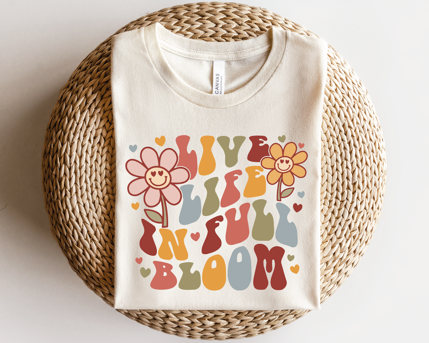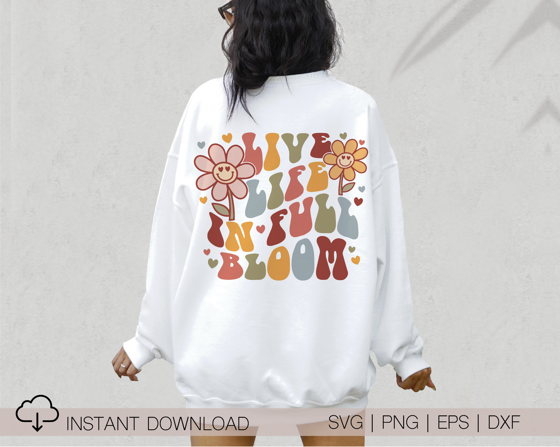 Live Life in Full Bloom SVG PNG | Smile Flower Sublimation | Inspirational | Retro Vintage T shirt Design