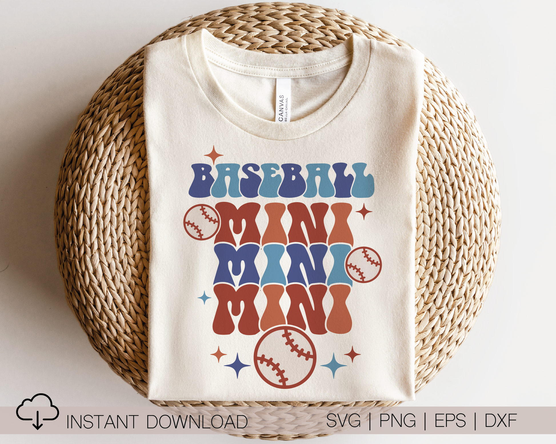 Baseball Mini SVG PNG | Groovy Baseball Sublimation | Retro Mom Mini T shirt Design