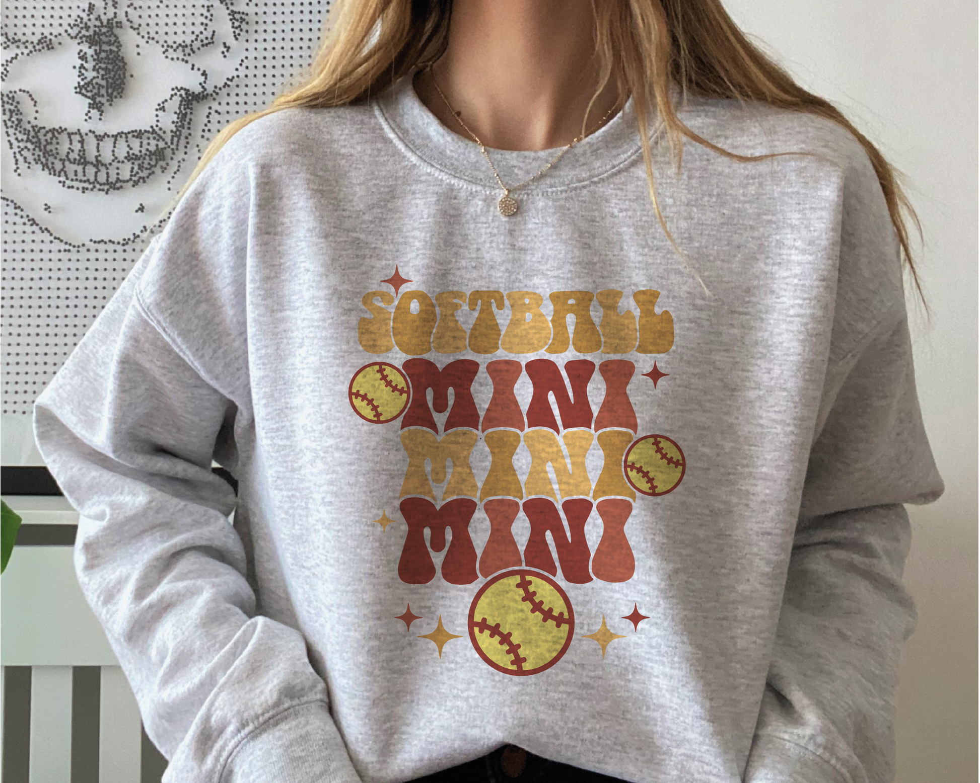 Softball Mini SVG PNG | Groovy Softball Sublimation | Retro Mom Mini T shirt Design