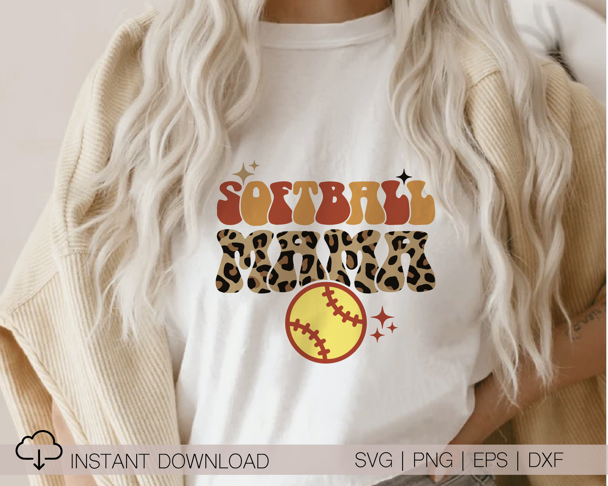 Leopard Softball Mama SVG PNG | Groovy Softball Sublimation | Mom T shirt Design