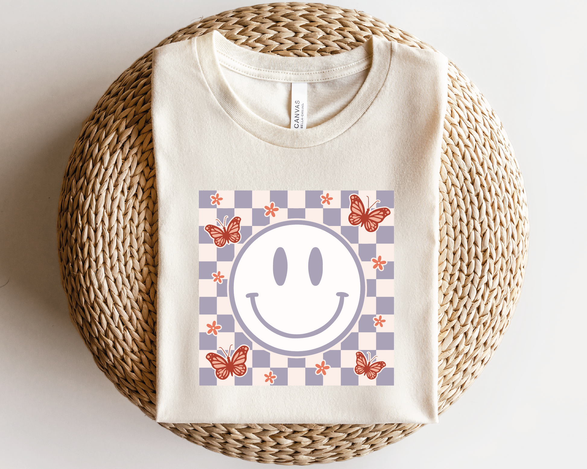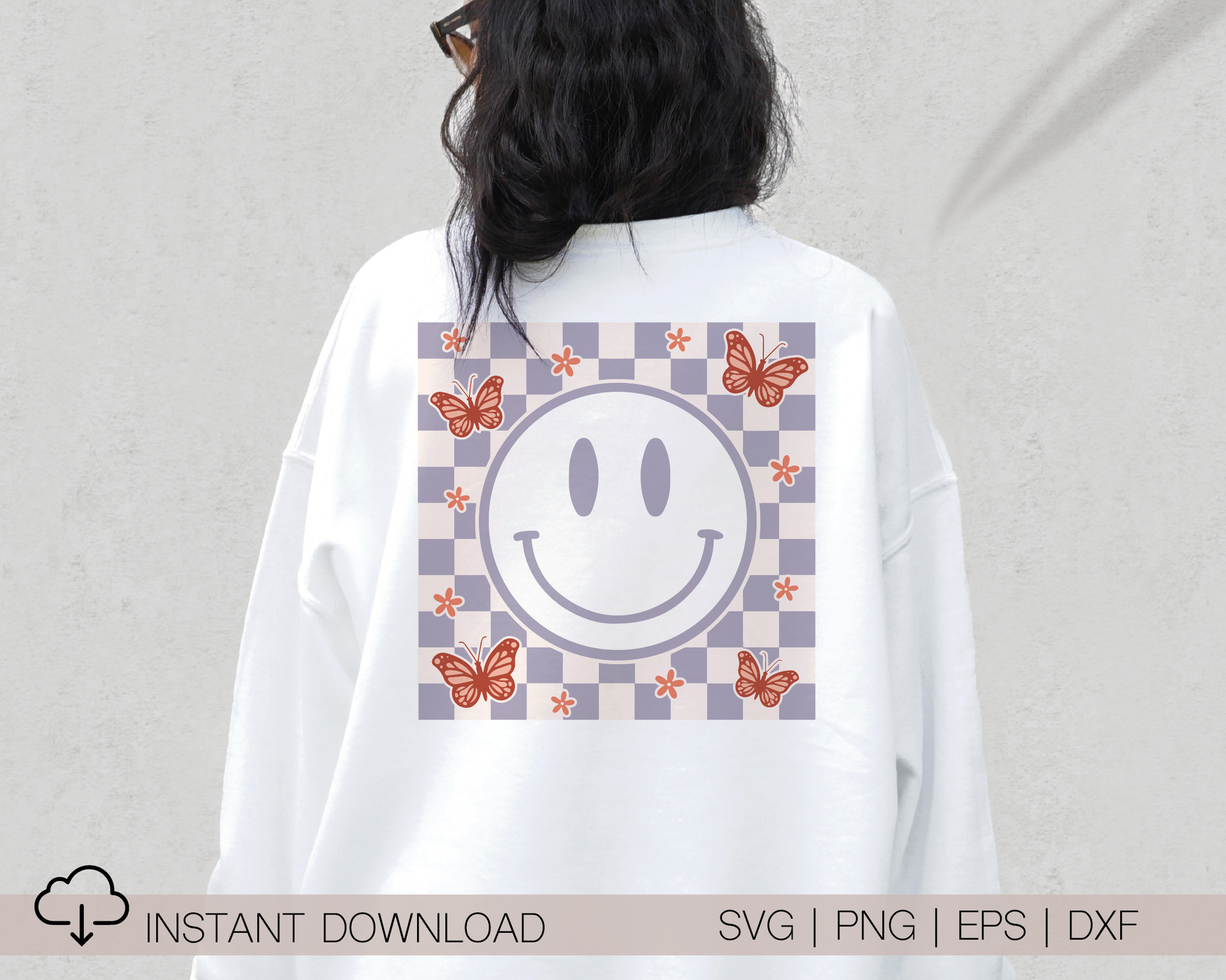 Checkered Pattern Smile Face SVG PNG | Butterfly Sublimation | Inspirational | Retro Vintage T shirt Design