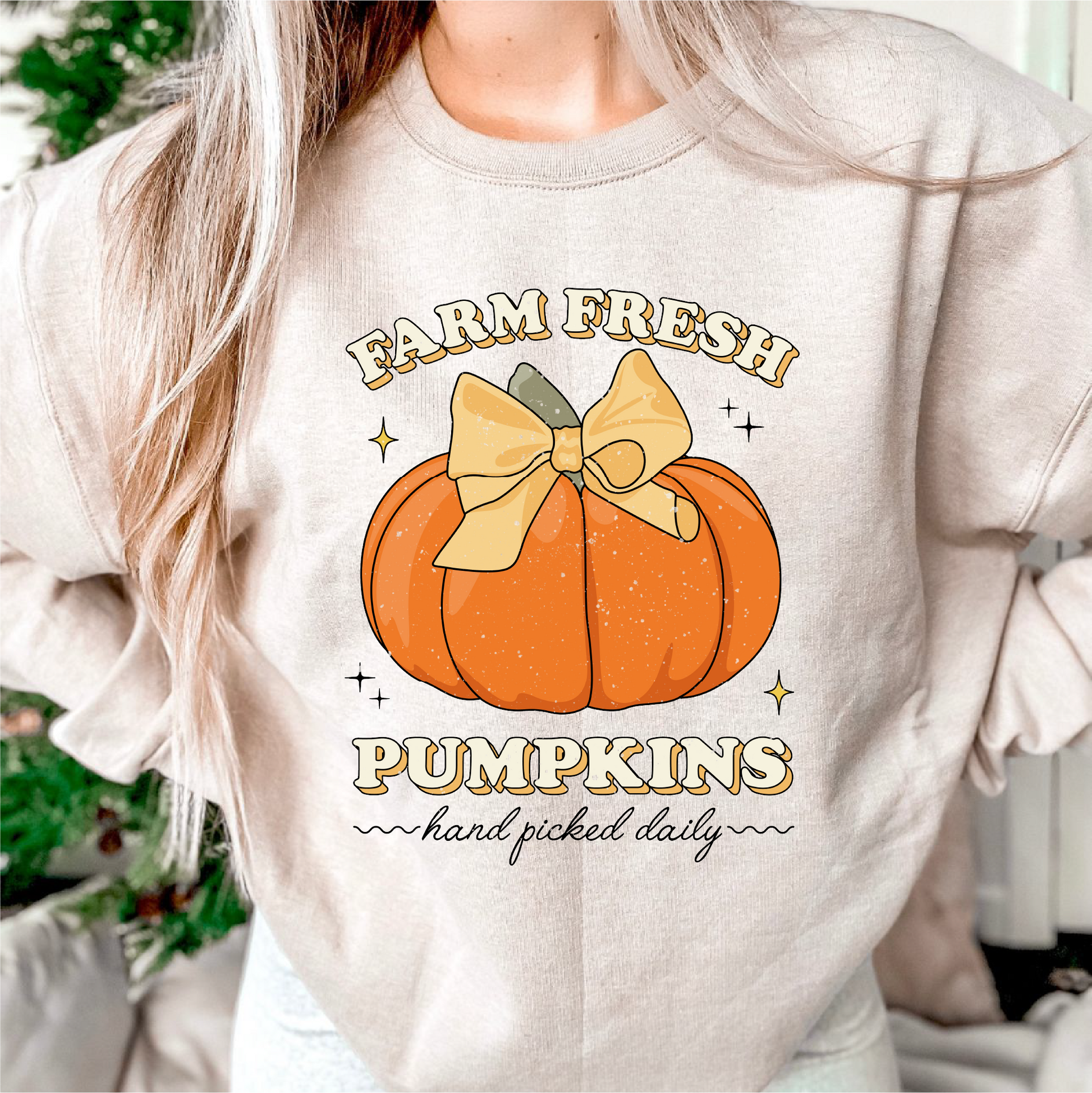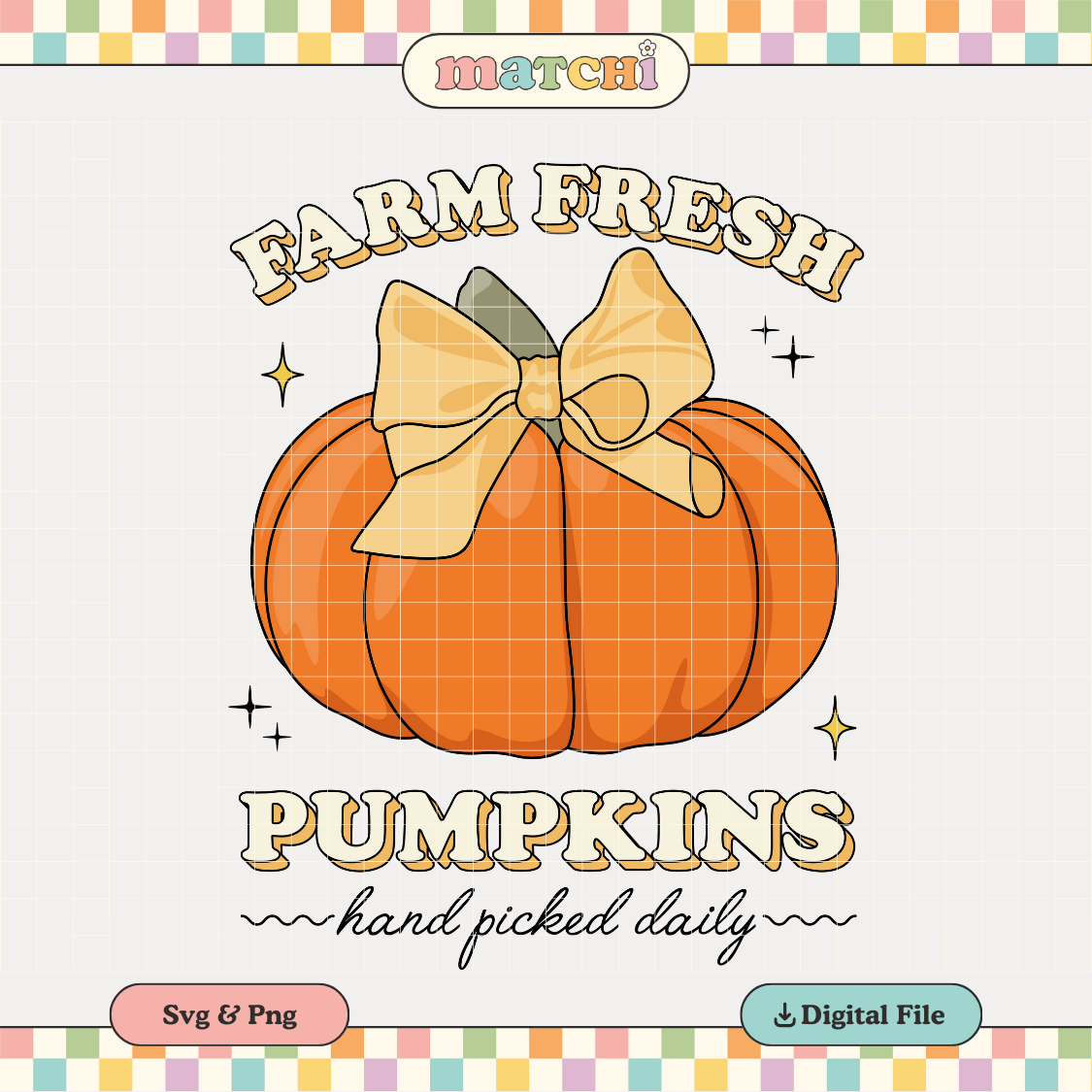 Farm Fresh Pumkins PNG SVG | Fall Autumn Girl Sublimation | Girl Bows Tshirt Design