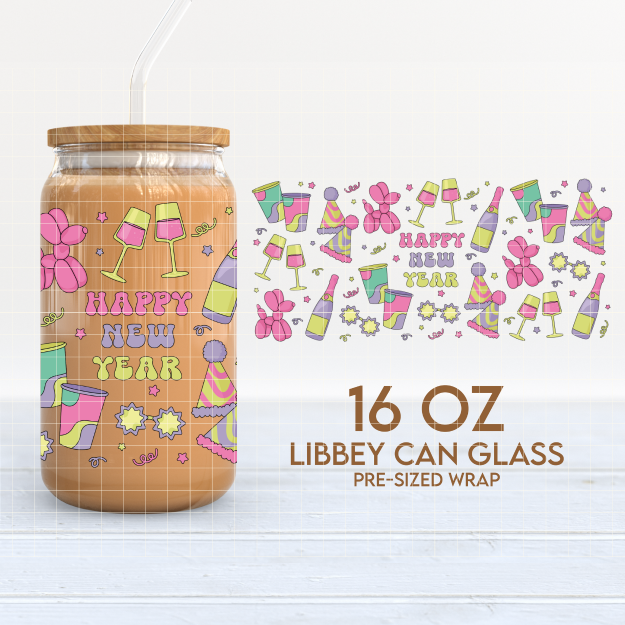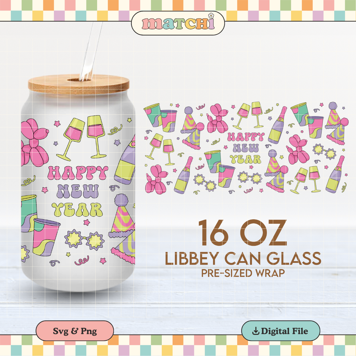 Happy New Year Cup Wrap | New Year 16oz Libbey Can Glass | 2015 PNG SVG