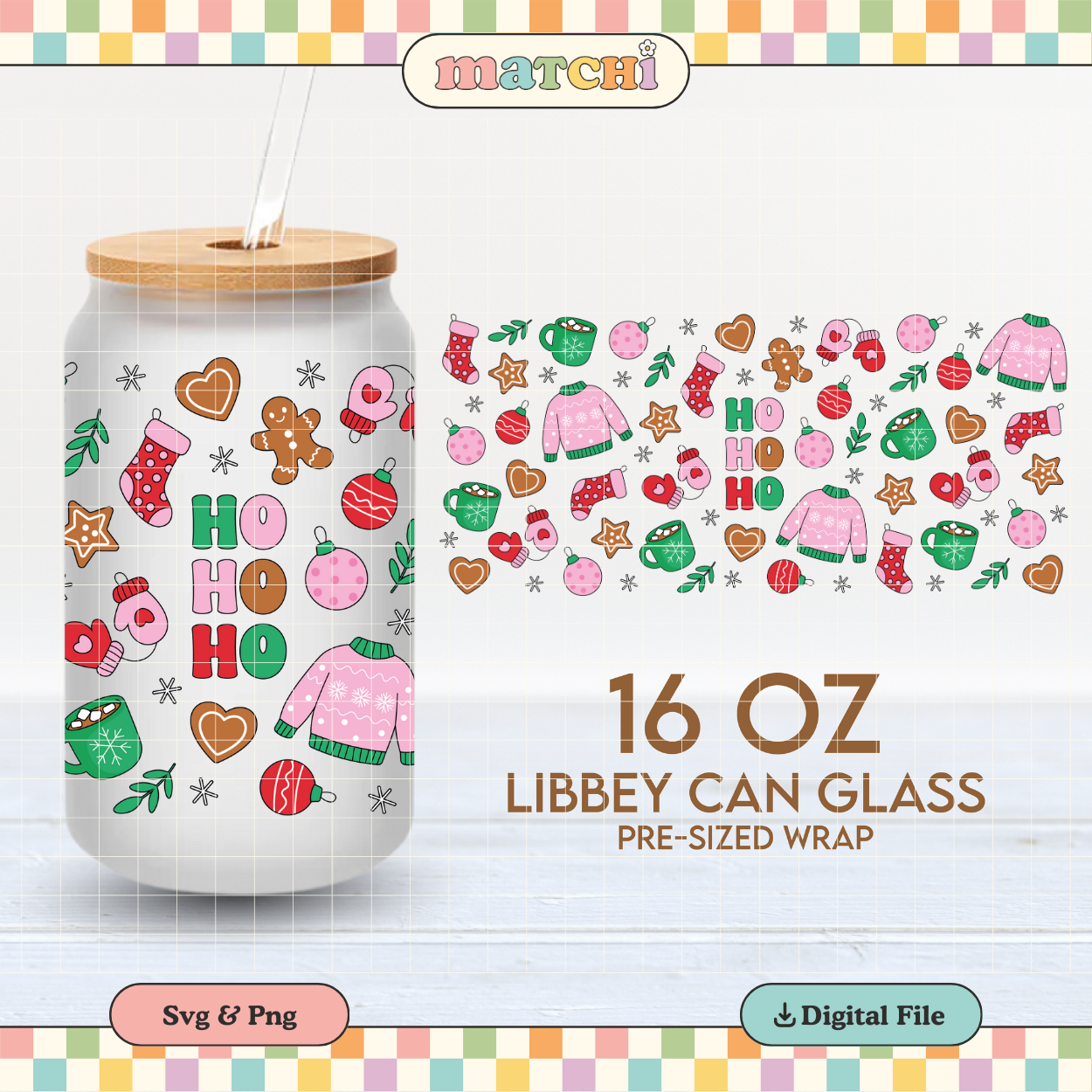 Ho Ho Ho | Girlie Christmas 16oz Cup Wrap PNG SVG