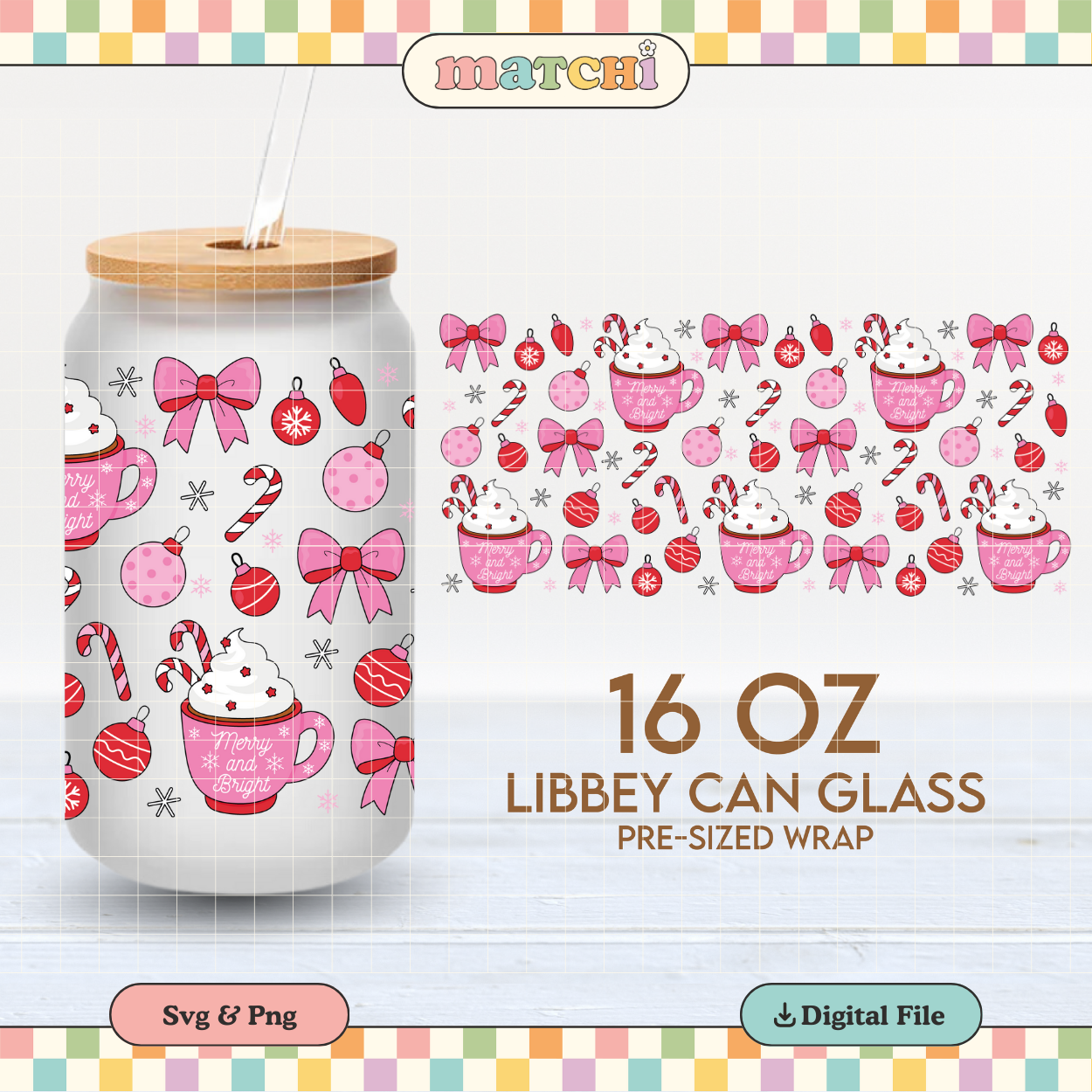 Hot Cocoa & Bows | Girlie Christmas 16oz Cup Wrap PNG SVG