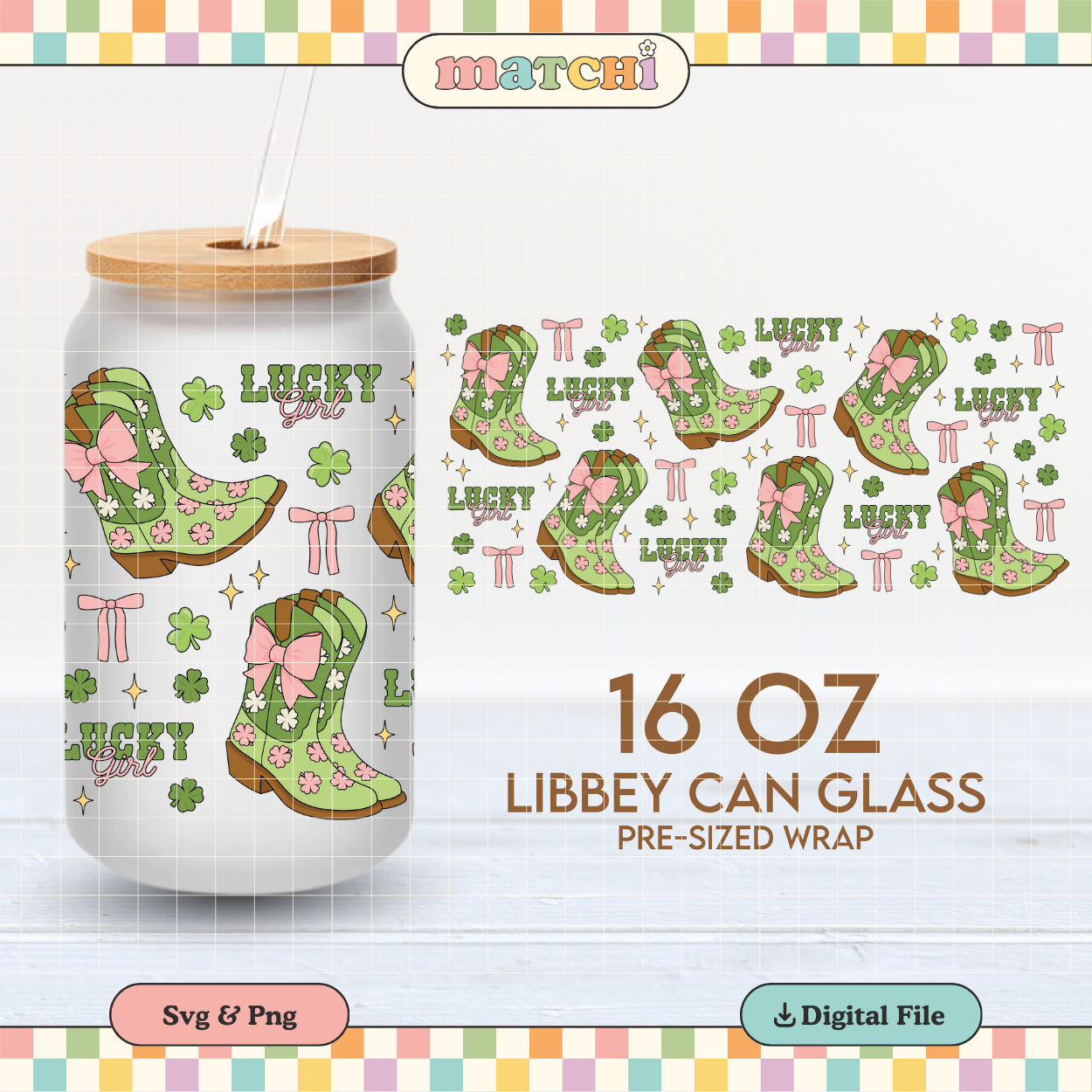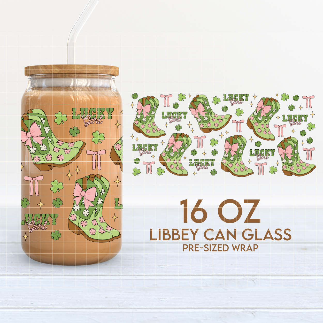 Lucky Girl Boots Cup Wrap | St. Patrick's Day 16oz Libbey | Lucky Cowgirl PNG SVG