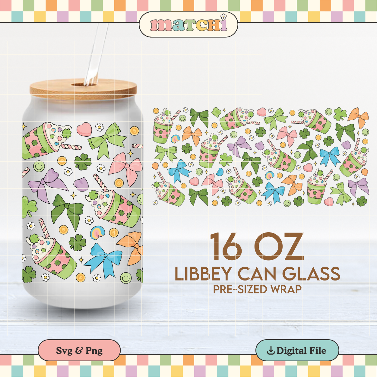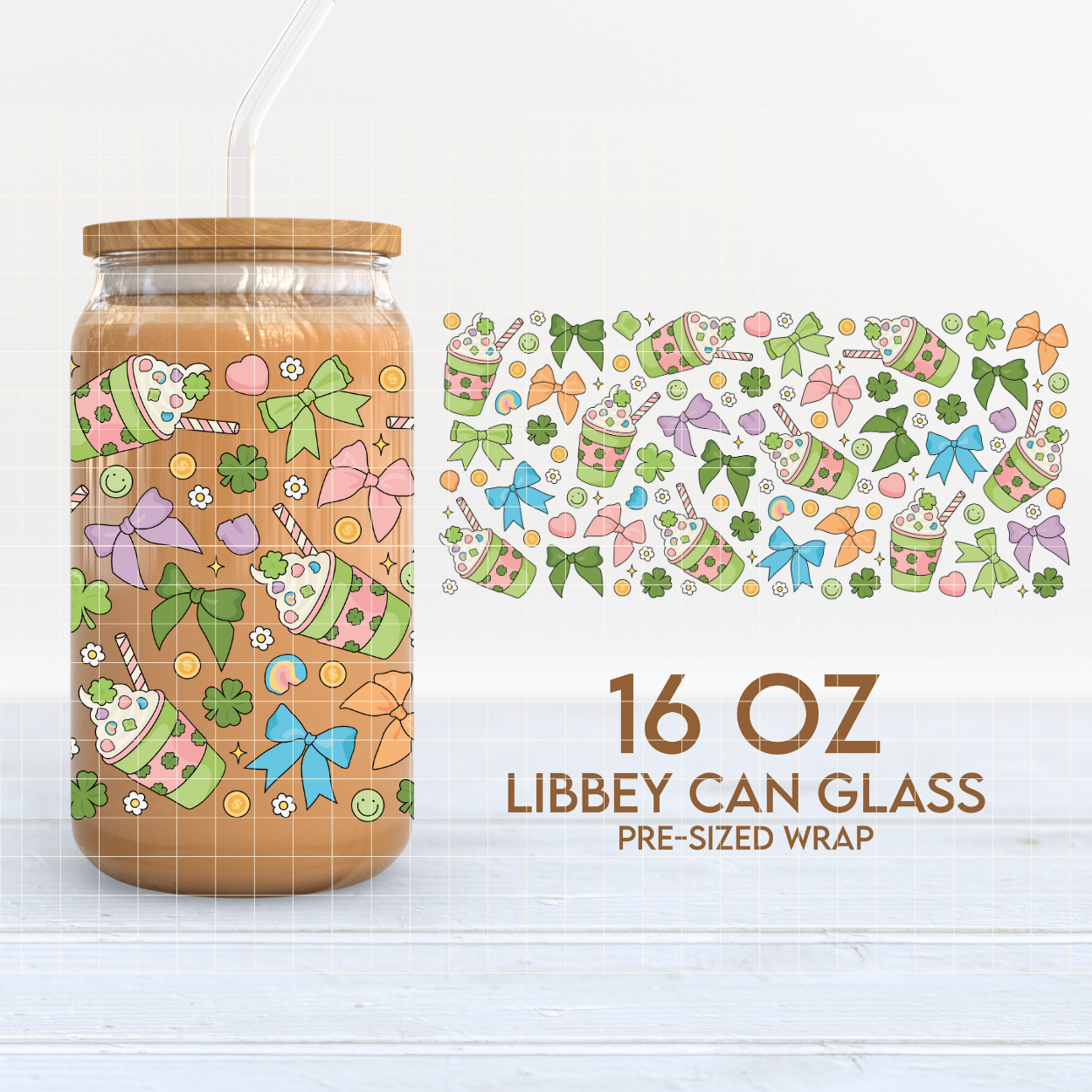 Lucky Latte & Bows Cup Wrap | St. Patrick's Day 16oz Libbey | Lucky Coffee PNG SVG
