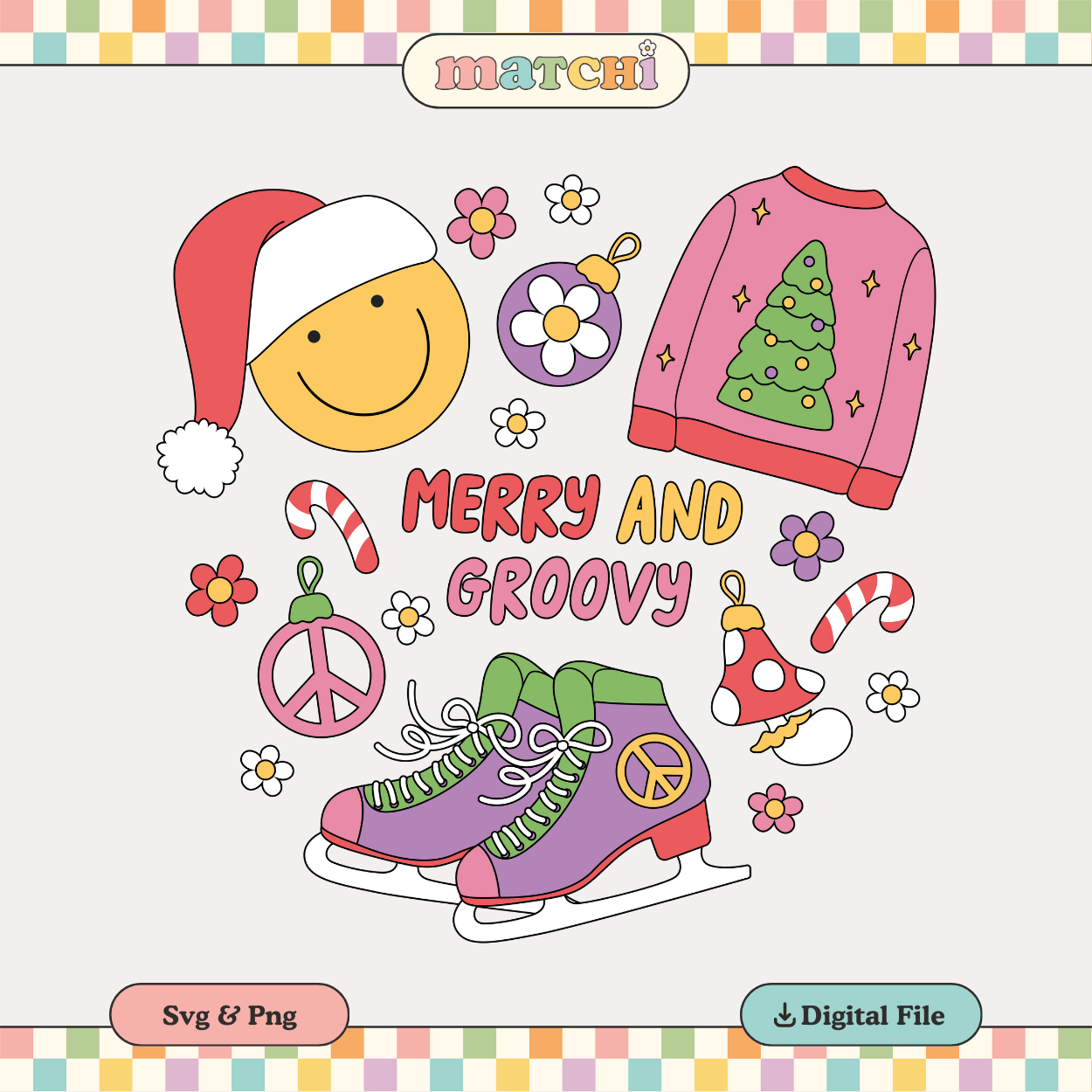 Merry and Groovy PNG SVG | Groovy Christmas Sublimation | Ice Skates Tshirt Design