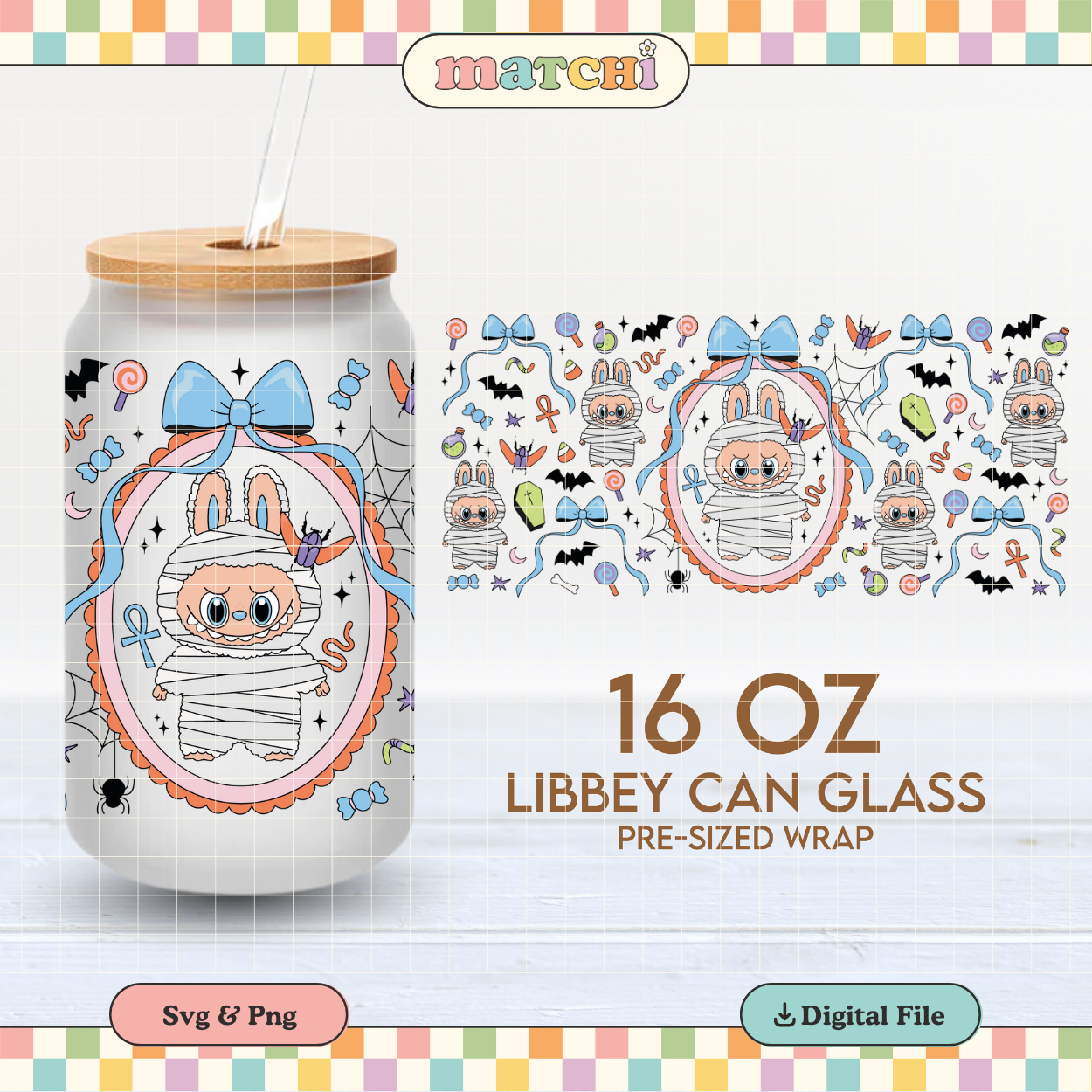 Mummy Monster Doll | Halloween 16oz Cup Wrap PNG SVG