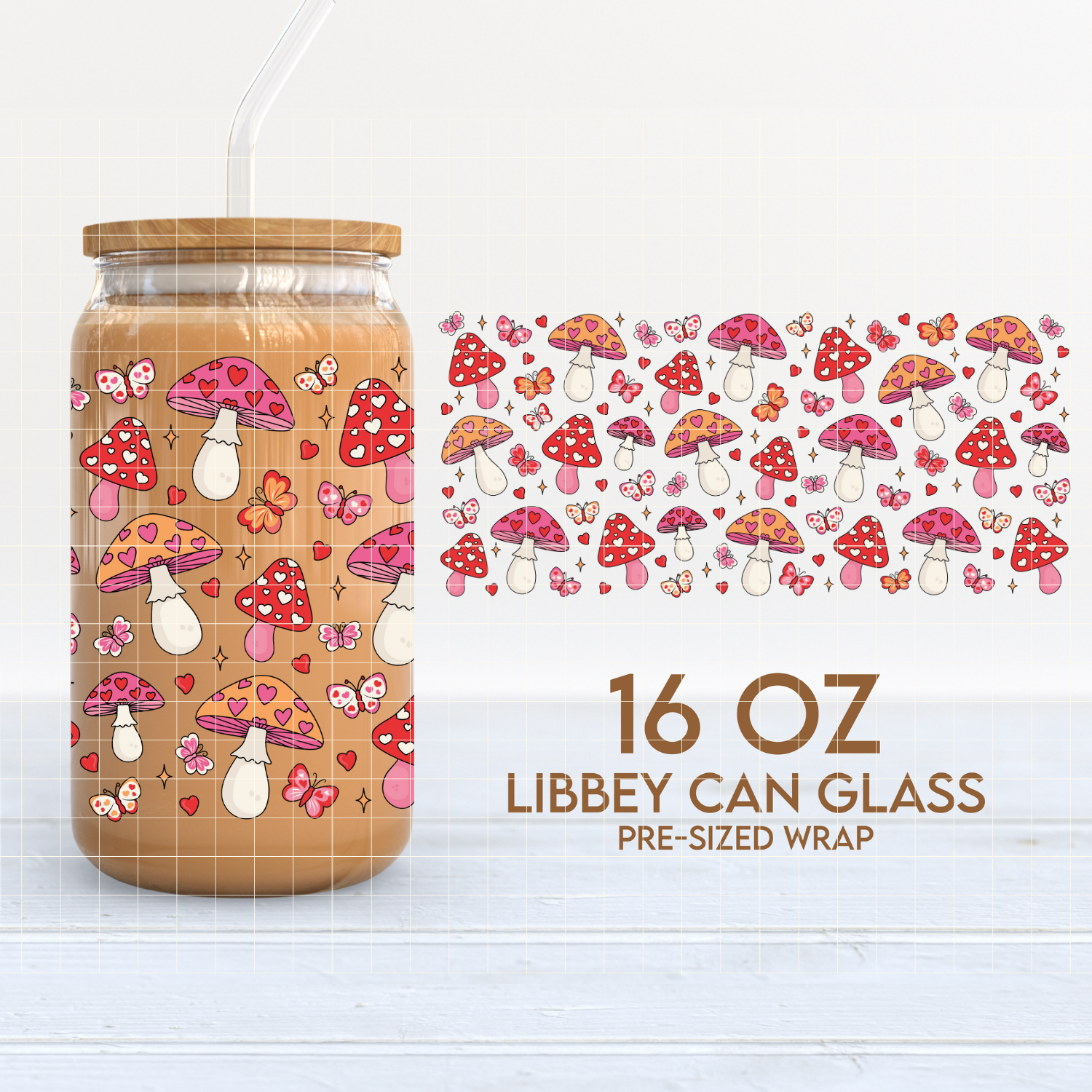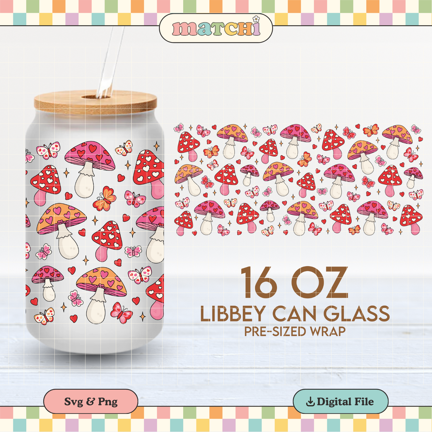 Mushroom Love Cup Wrap | Groovy Valentines 16oz Libbey Can Glass | PNG SVG