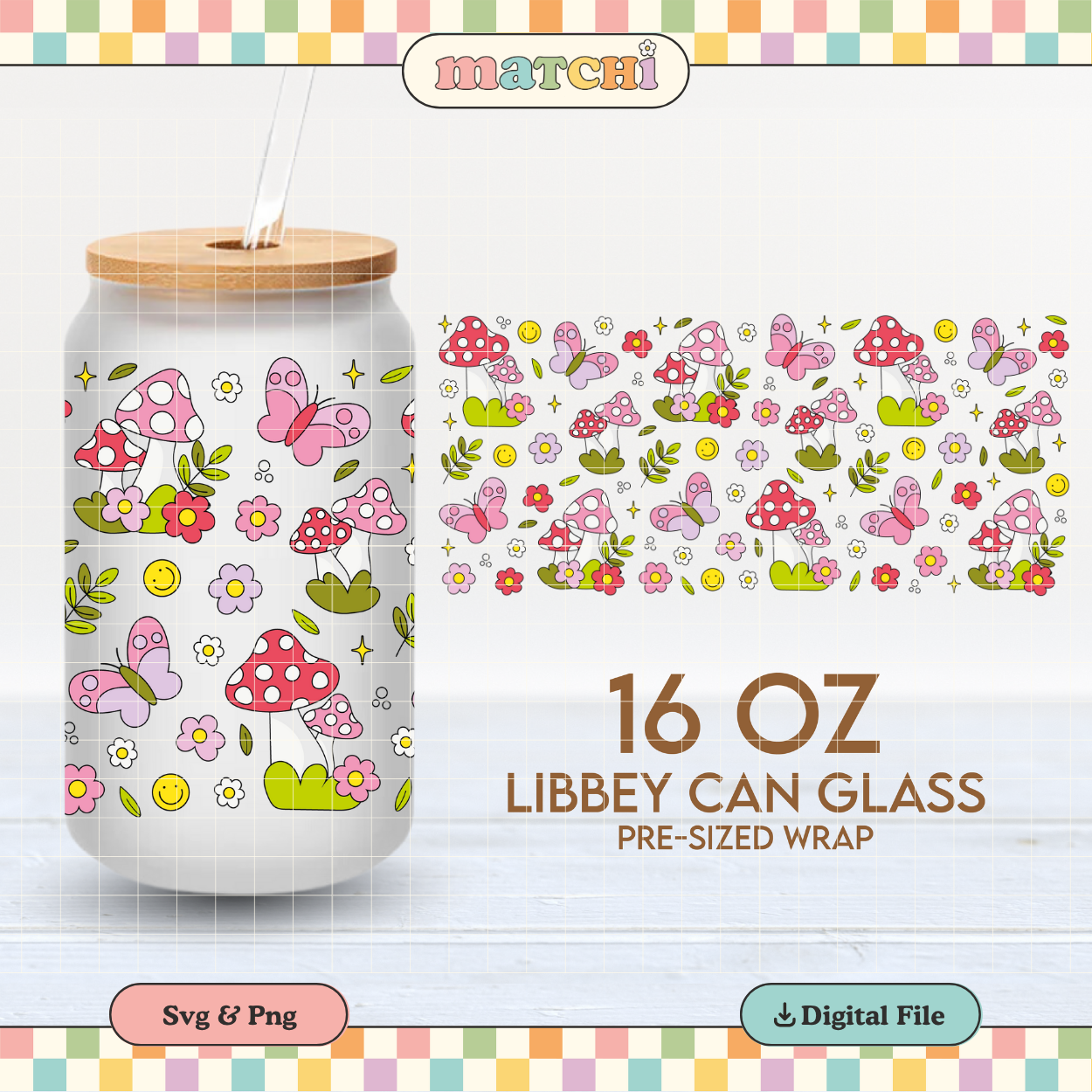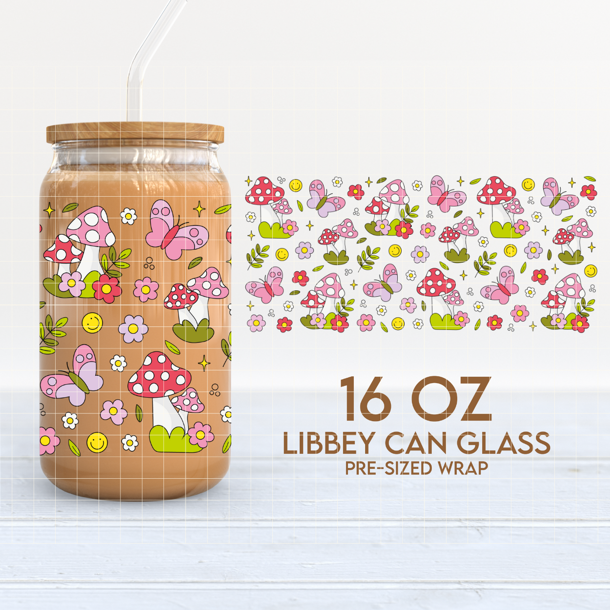 Mushrooms & Butterflies | 16oz Cup Wrap PNG SVG