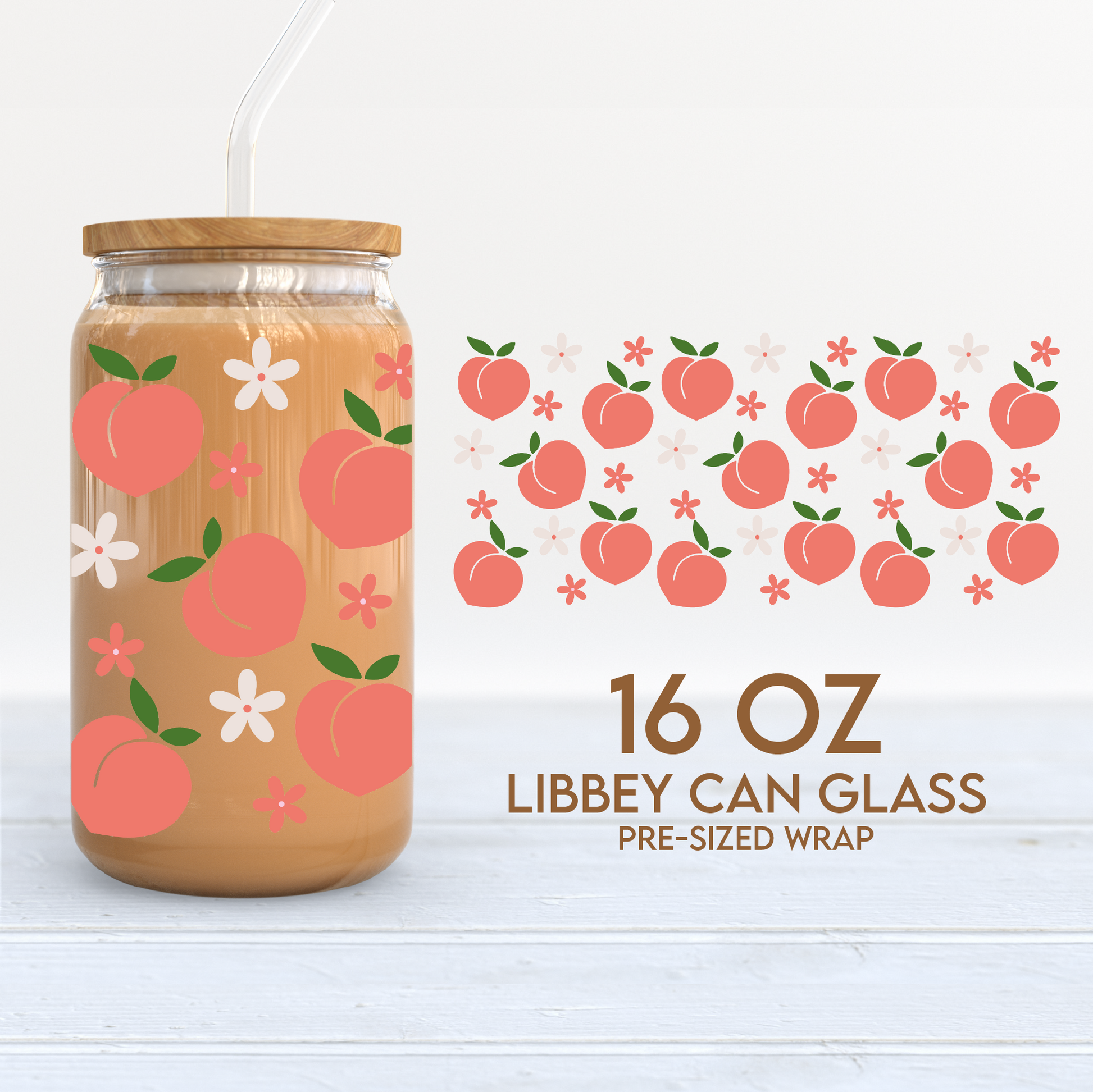 Peach Cup Wrap | Retro 16oz Libbey Can Glass | Summer Fruits PNG SVG