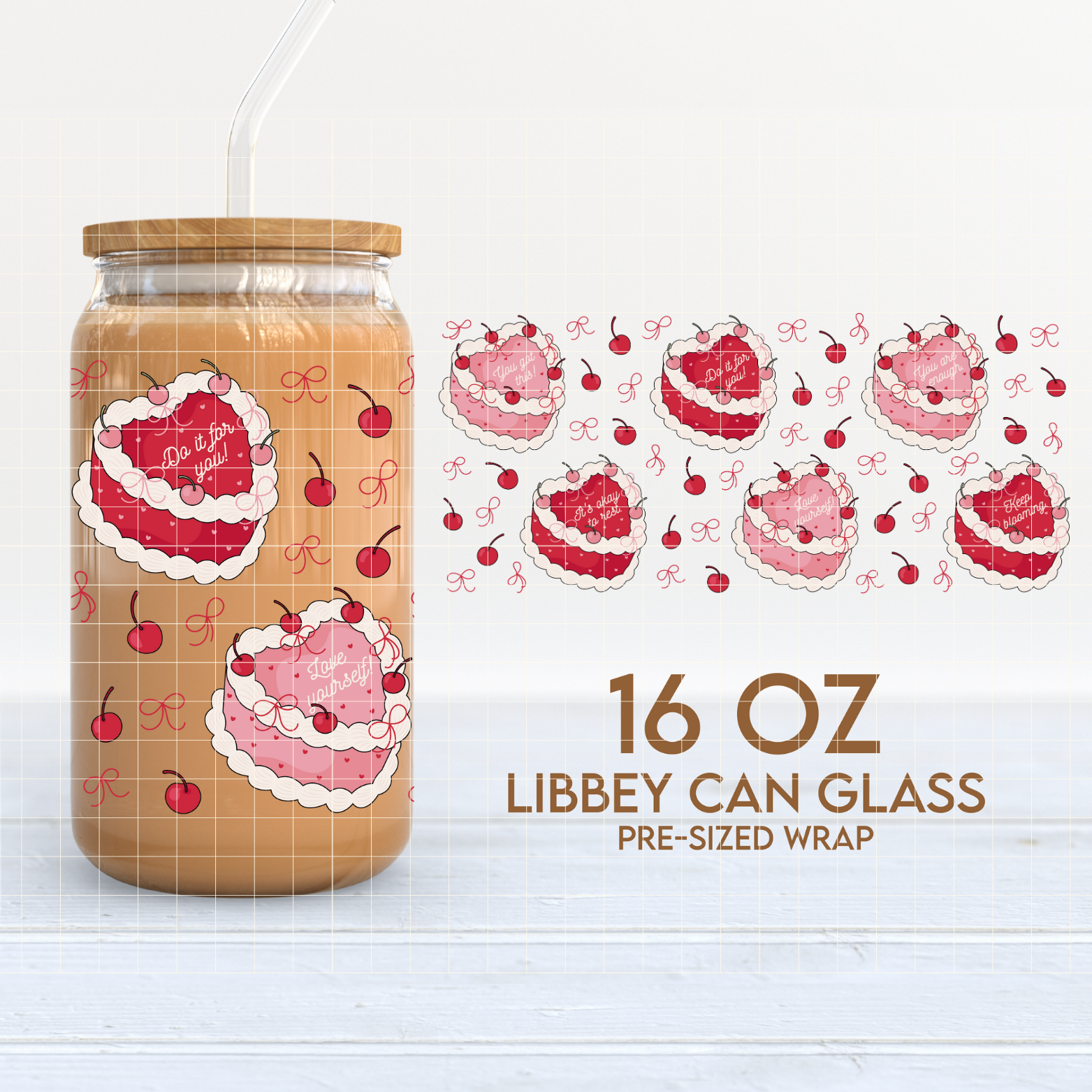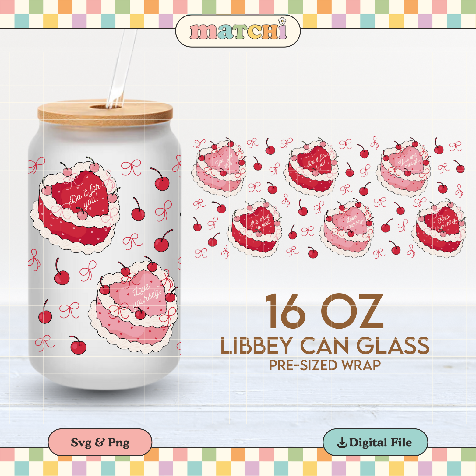 Positivity Heart Cakes Cup Wrap | Self Love 16oz Libbey Can Glass | PNG SVG
