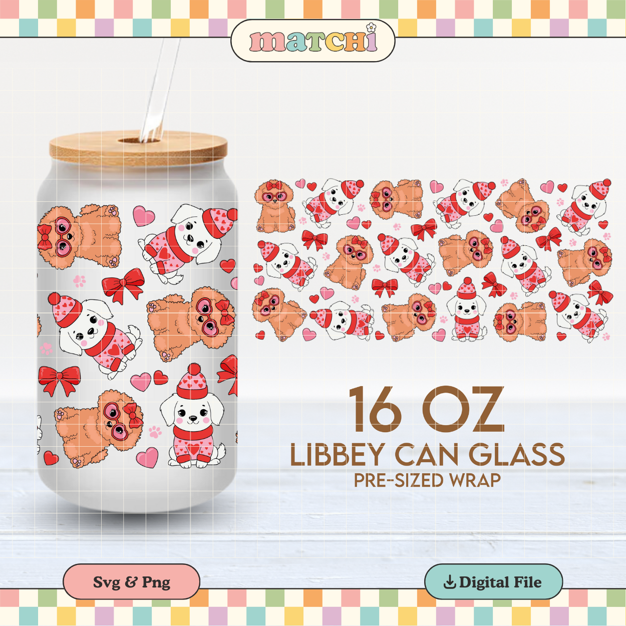 Puppy Love Cup Wrap | Valentine's Day Pets 16oz Libbey | Cute Dogs PNG SVG