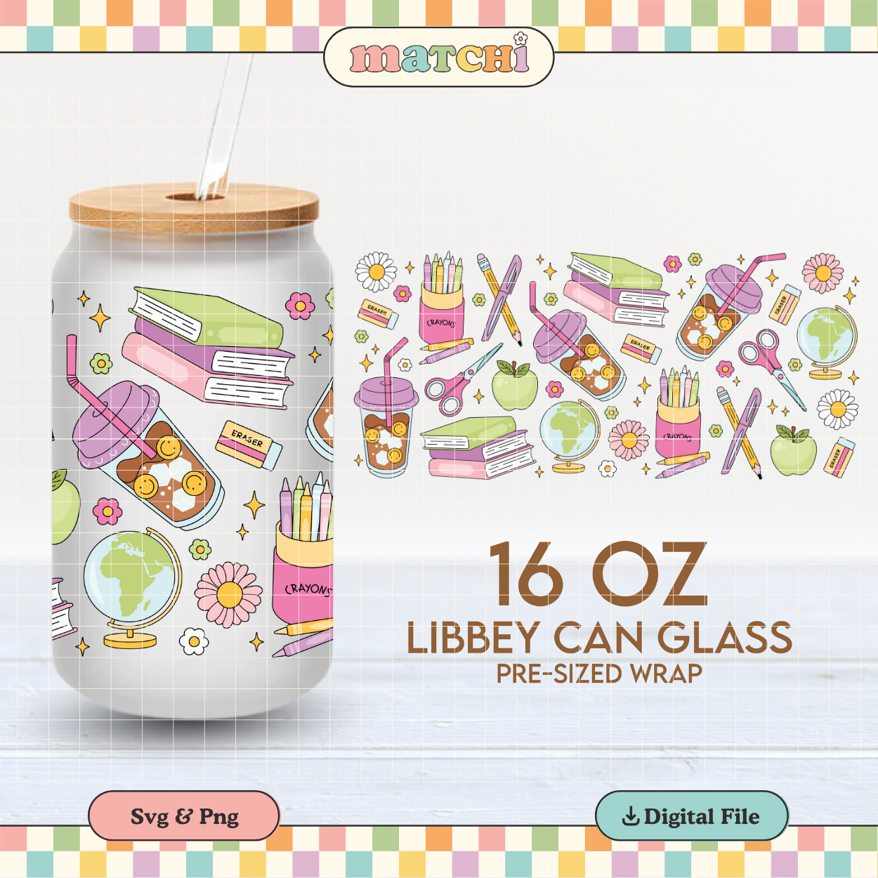 School Stuff & Coffee | School 16oz Cup Wrap PNG SVG