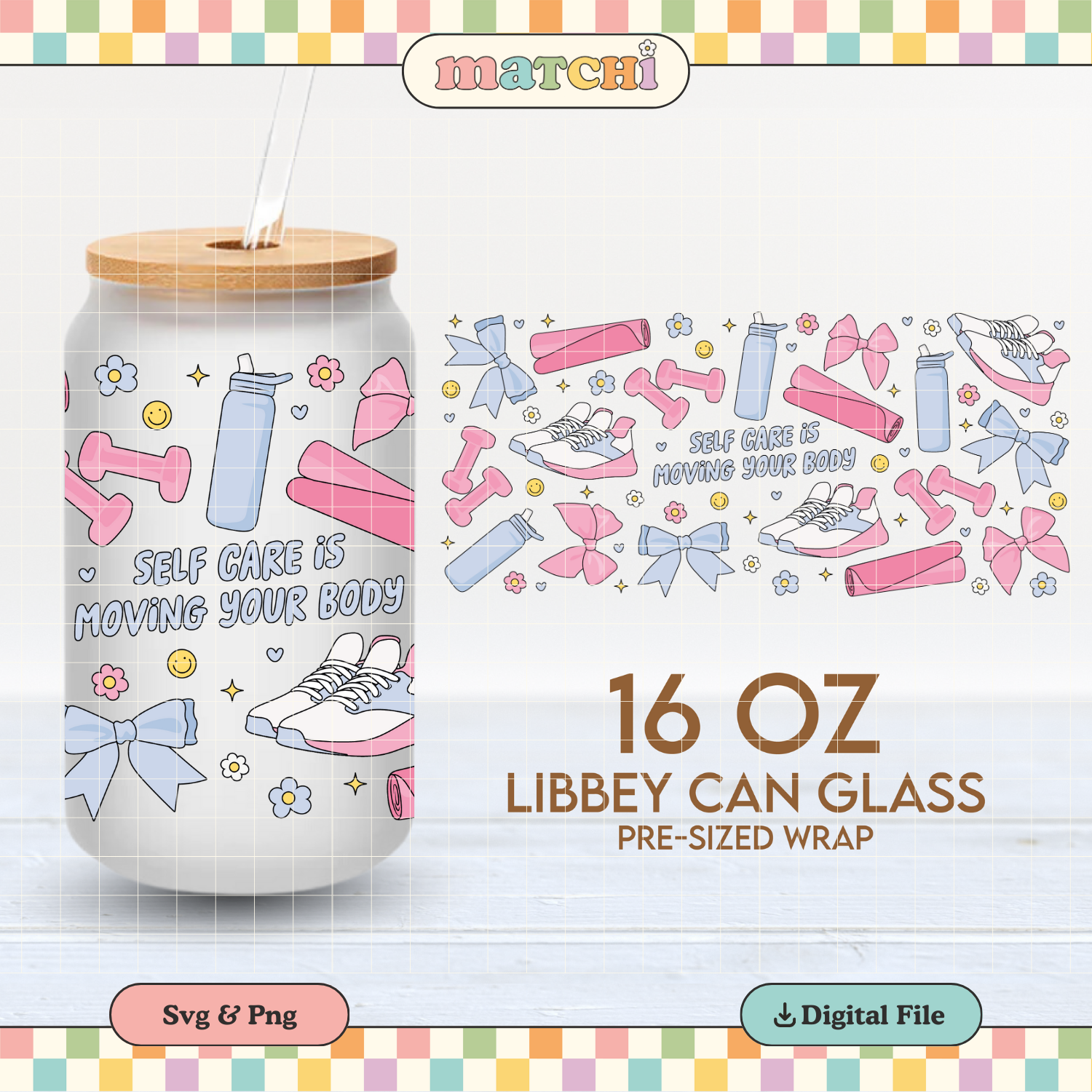 Self Care is Moving Your Body Cup Wrap | Self Love 16oz Libbey PNG SVG