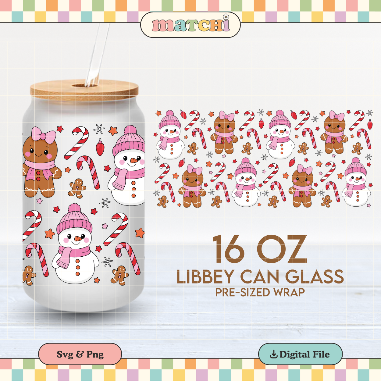 Snowman & Gingerbread | Girlie Christmas 16oz Cup Wrap PNG SVG