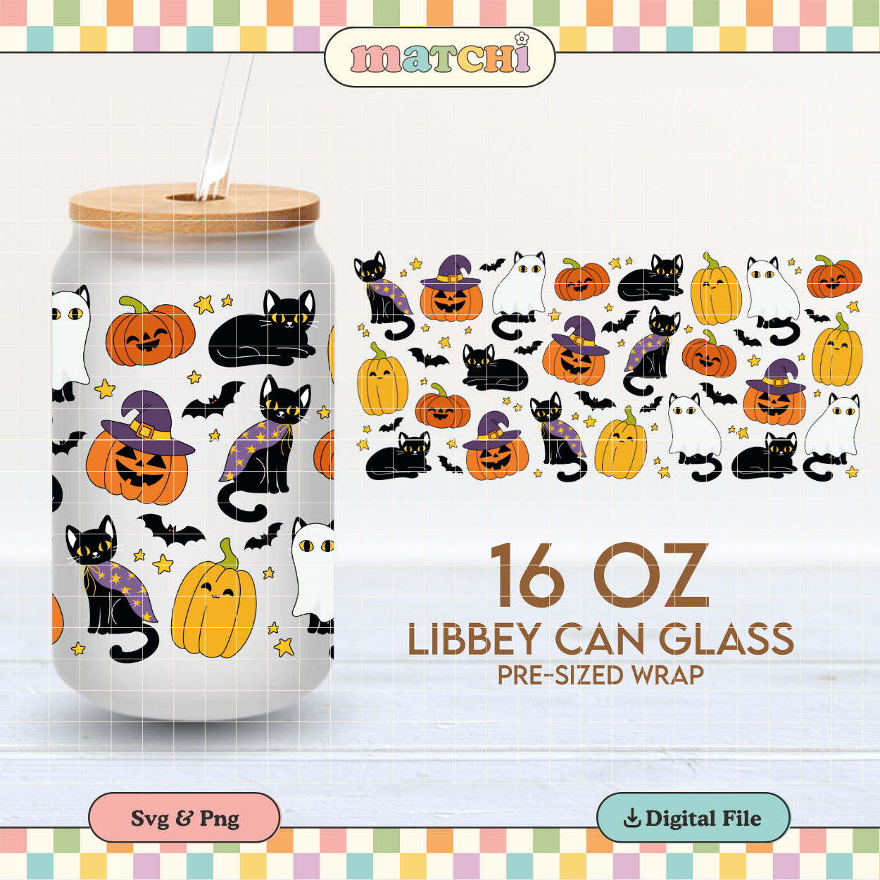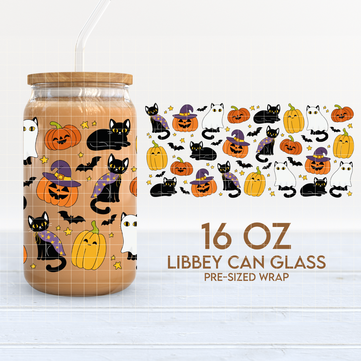 Spooky Black Cats | Halloween 16oz Cup Wrap PNG SVG