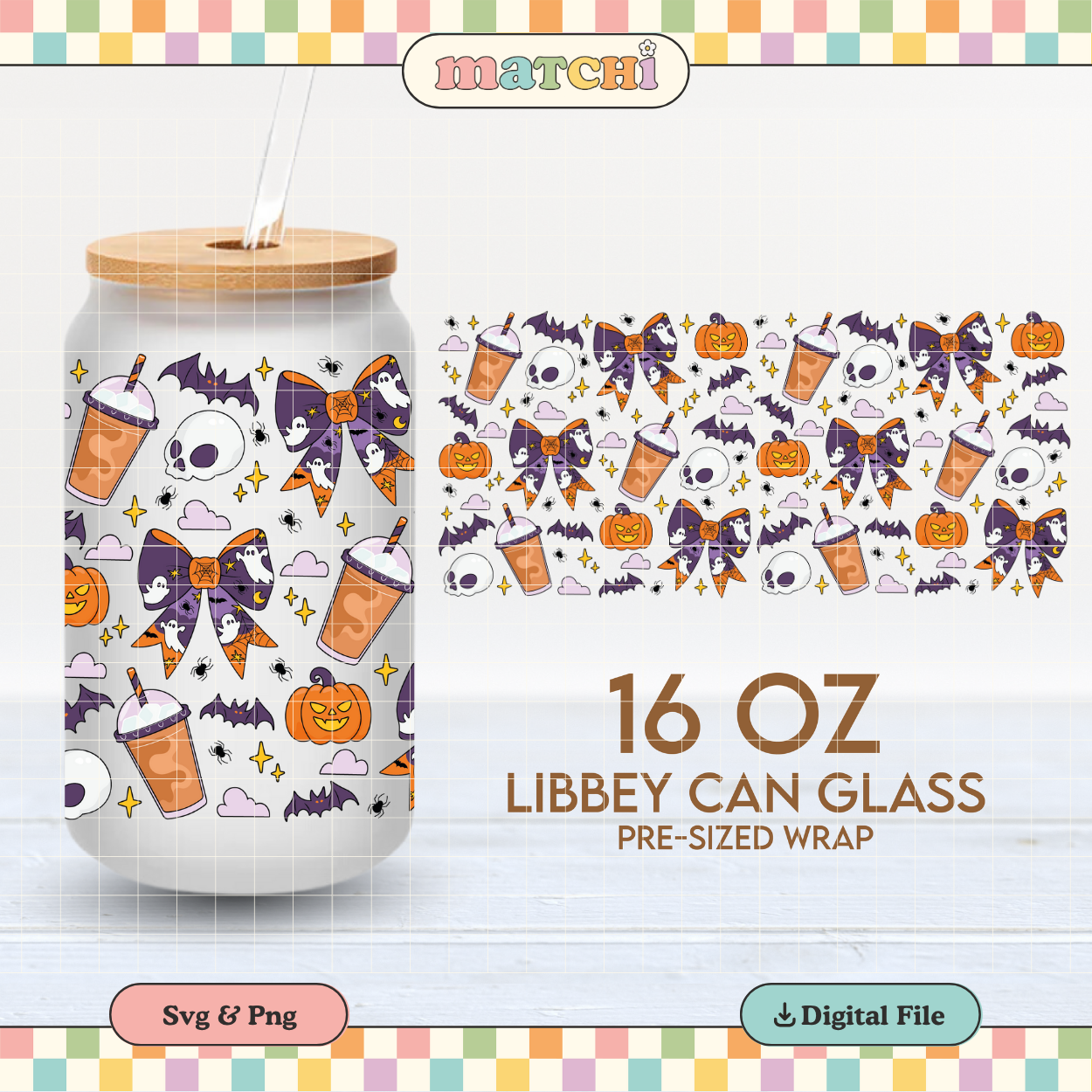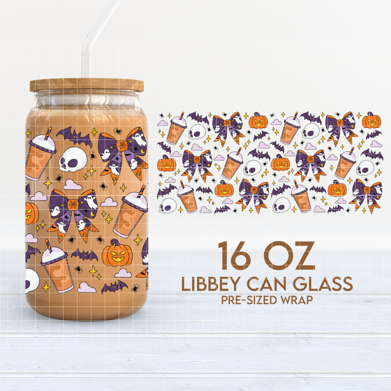 Spooky Coffee & Bows | Halloween 16oz Cup Wrap PNG SVG
