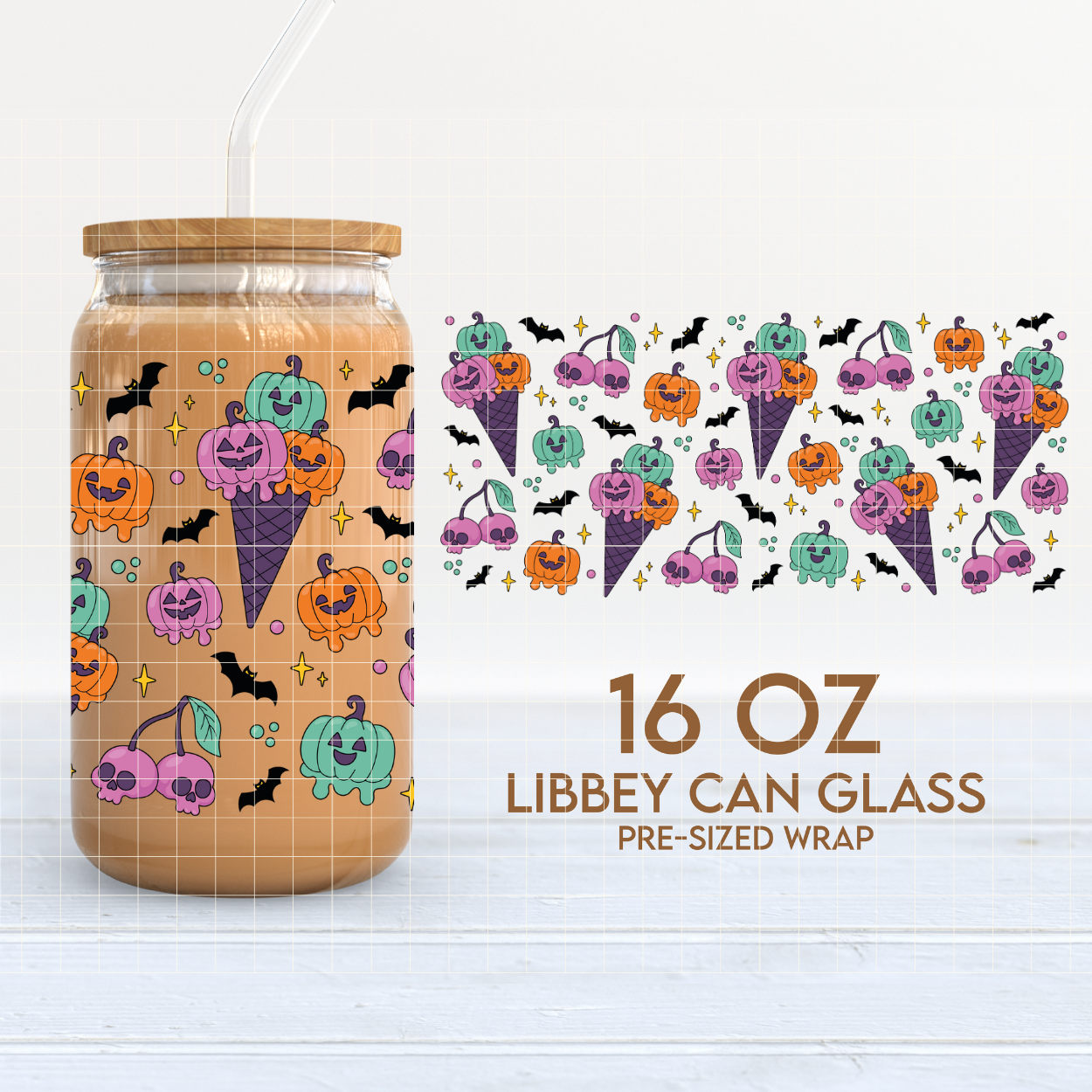 Spooky Ice Cream | Halloween 16oz Cup Wrap PNG SVG