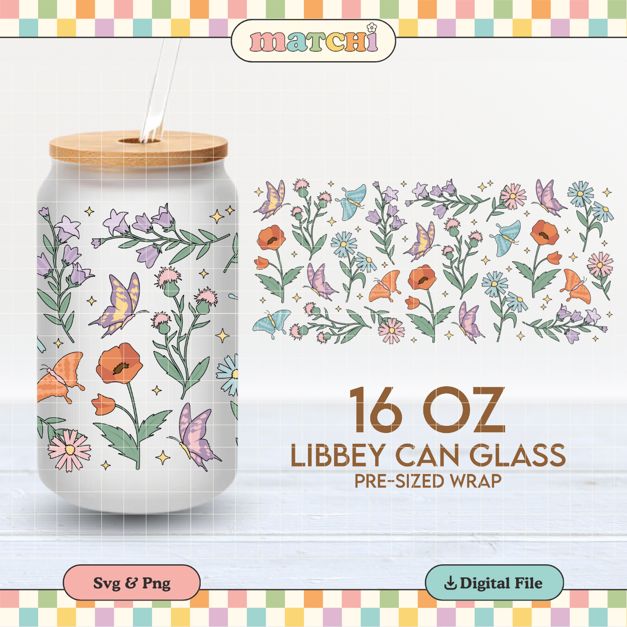 Flowers & Butterflies | Spring 16oz Cup Wrap PNG SVG