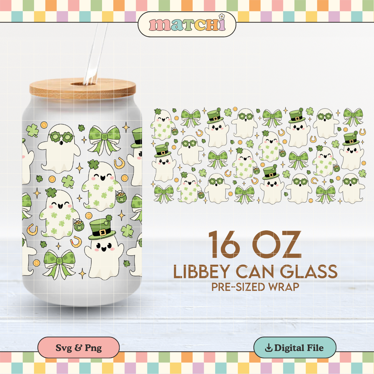 St. Patricks Ghosts Cup Wrap | St. Patrick's Day 16oz Libbey | Lucky PNG SVG