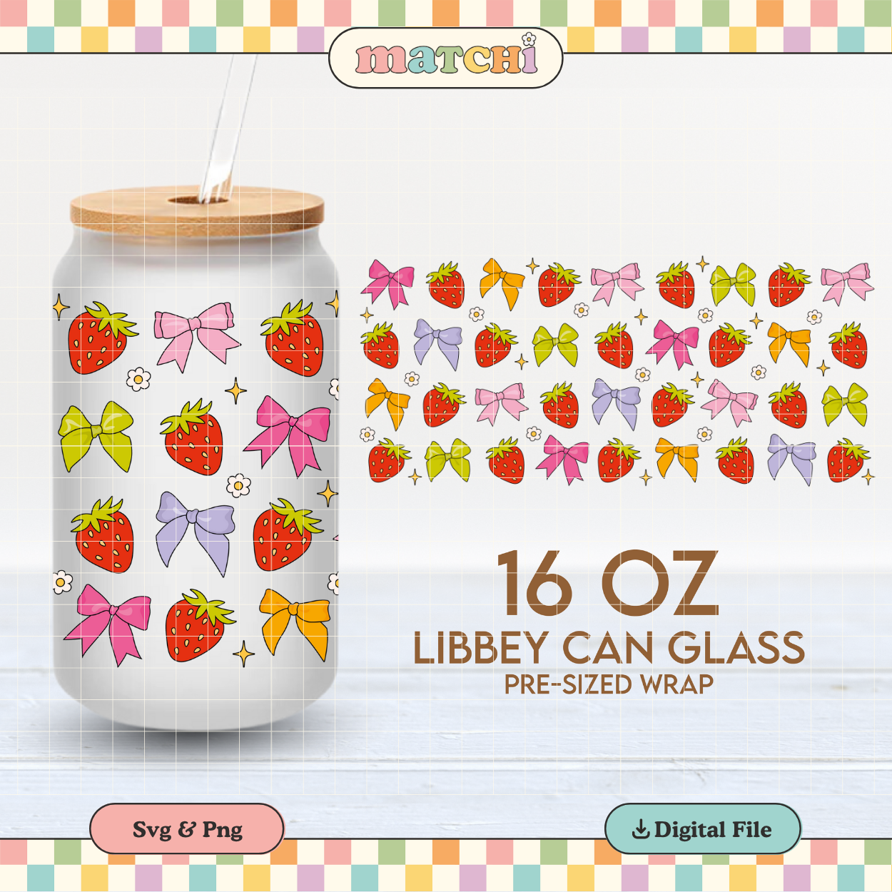 Strawberries & Bows | 16oz Cup Wrap PNG SVG