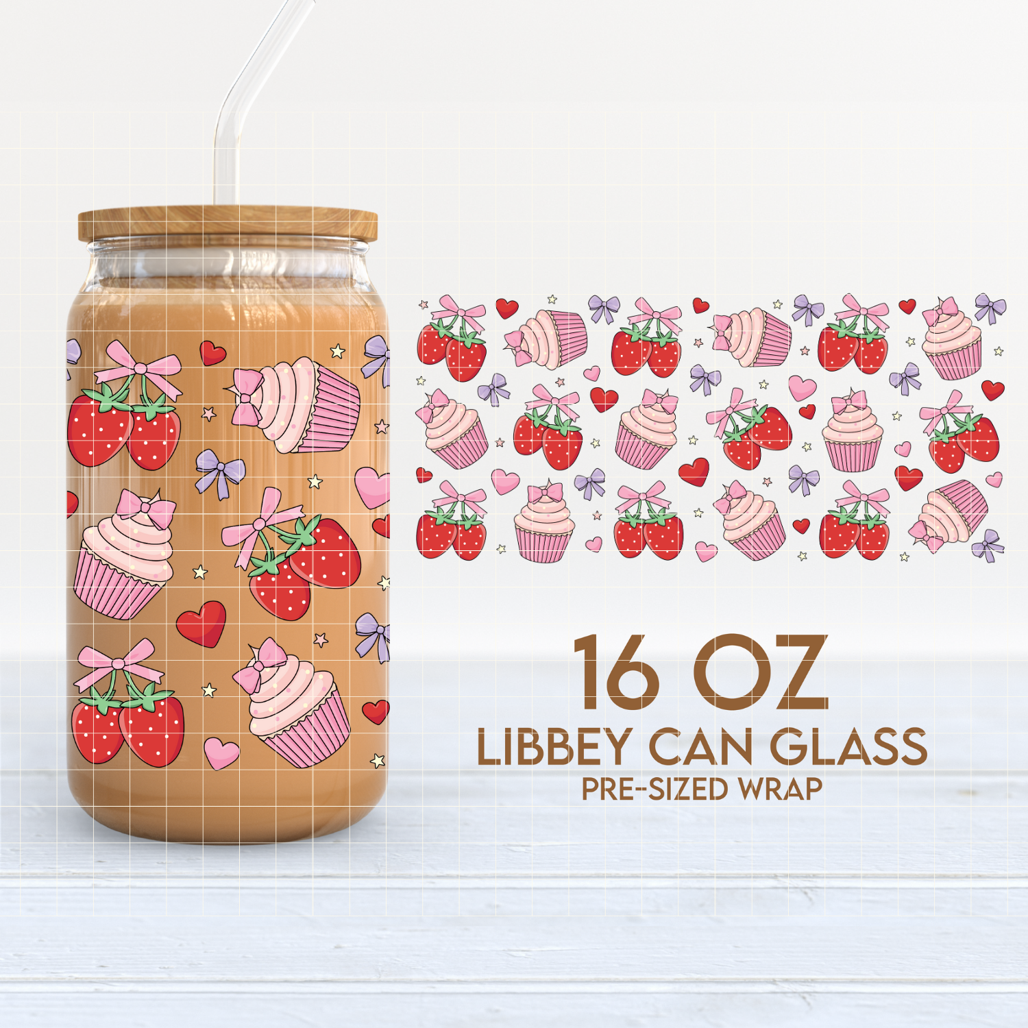 Strawberries & Cupcakes Cup Wrap | Valentine's 16oz Libbey Can Glass | PNG SVG