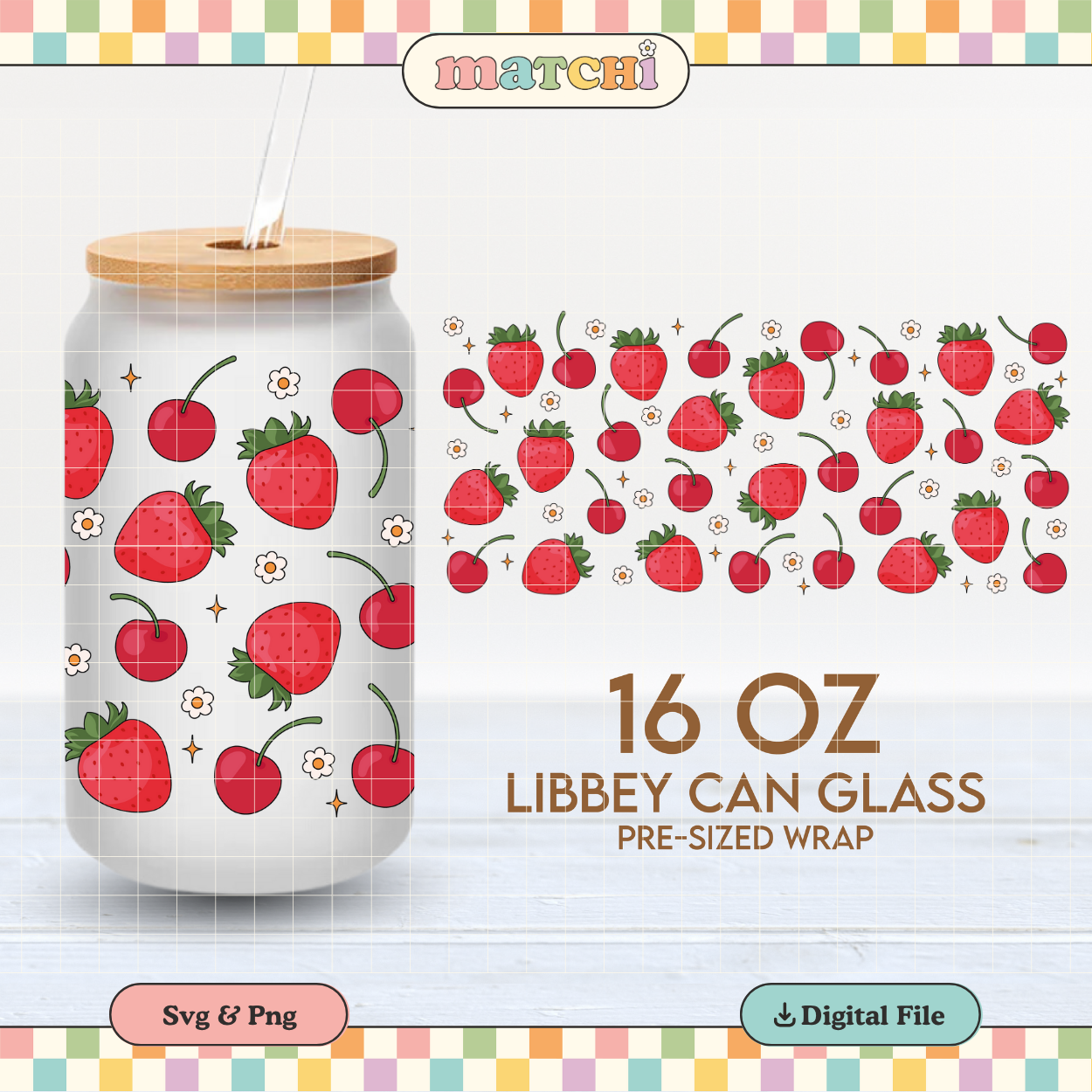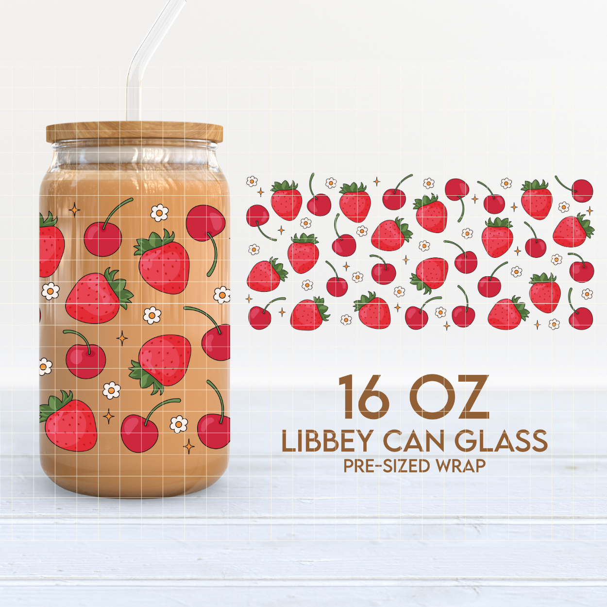 Strawberries & Cherries | 16oz Cup Wrap PNG SVG