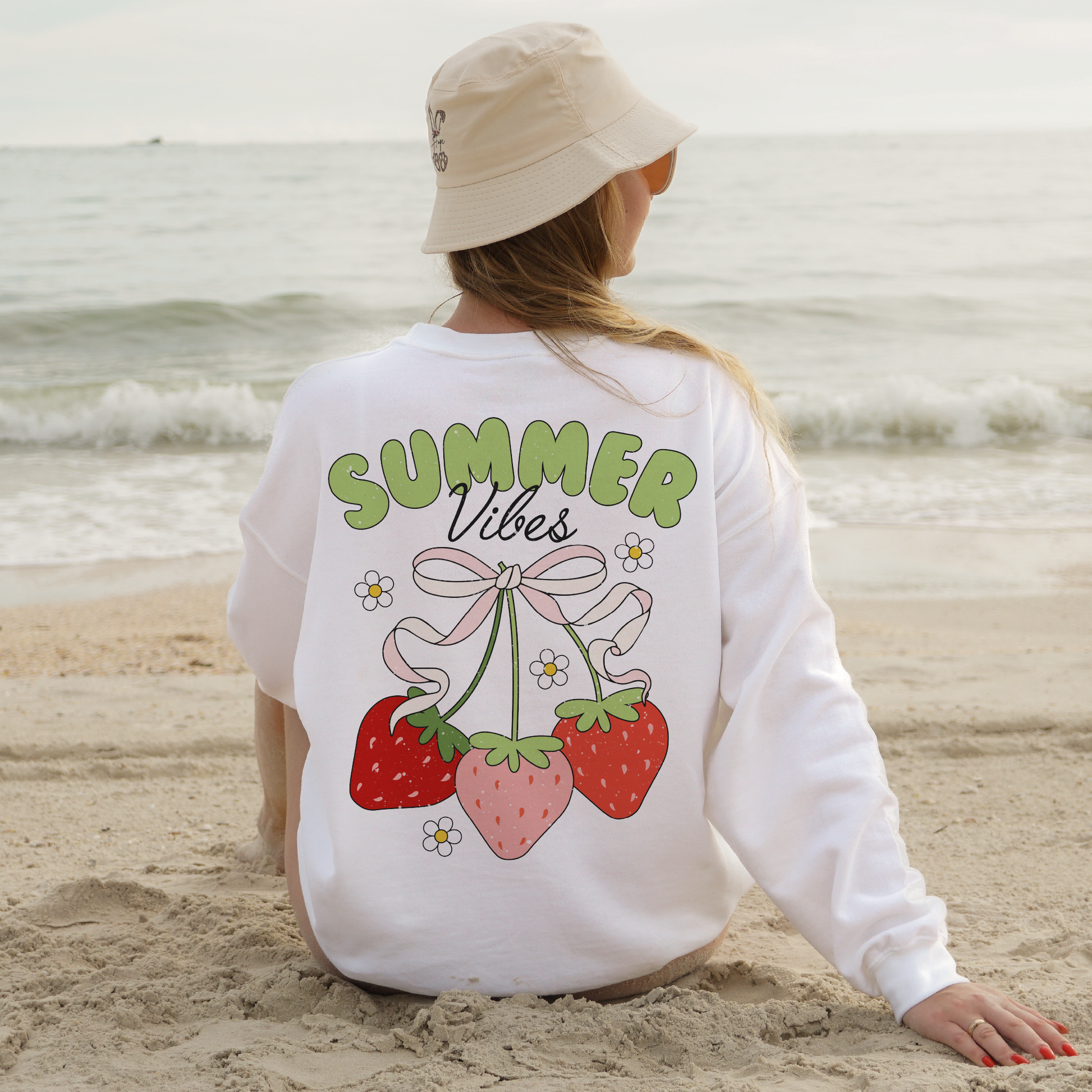 Summer Vibes & Strawberries PNG SVG | Summer Sublimation | Trendy Tshirt Design
