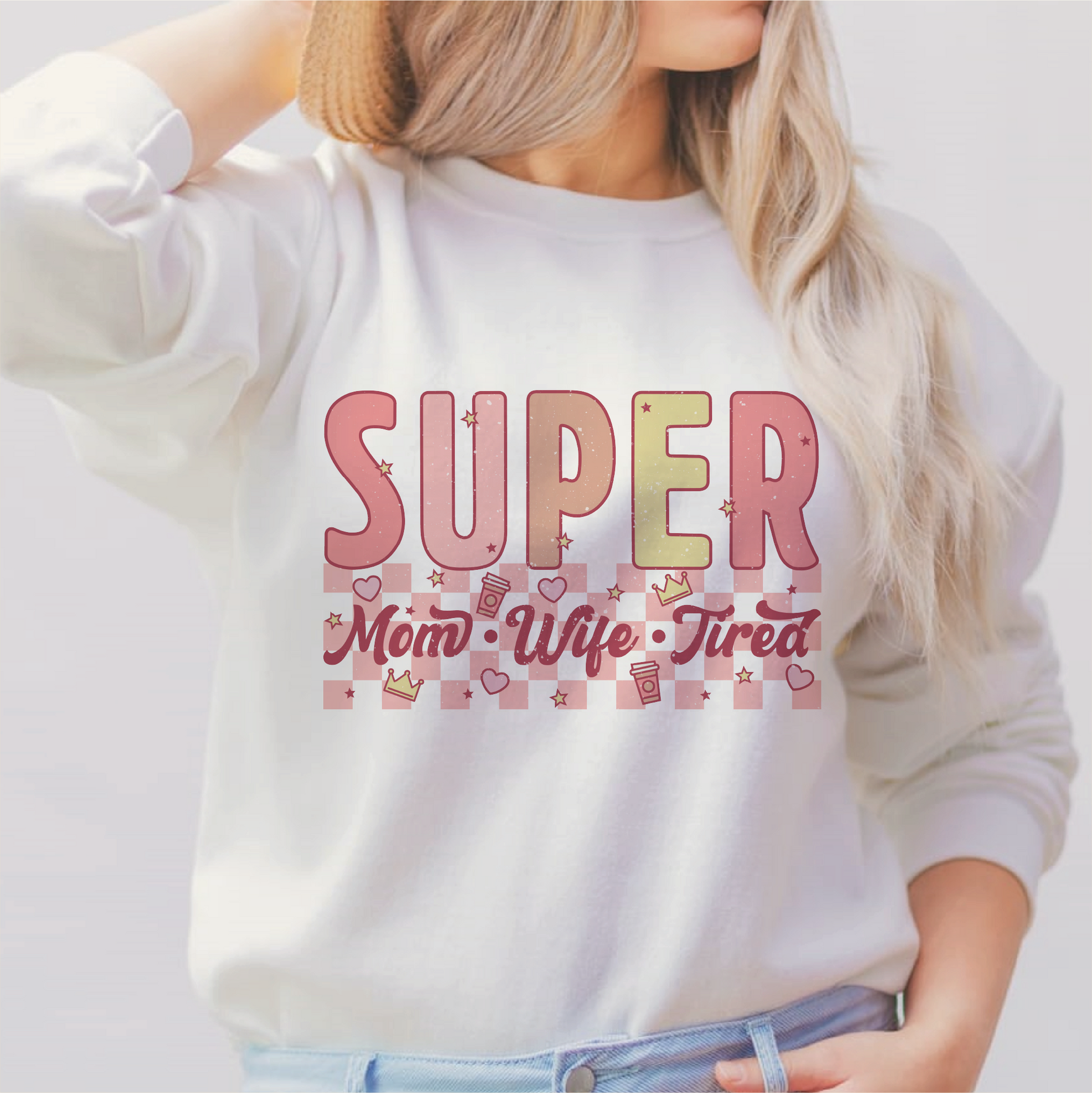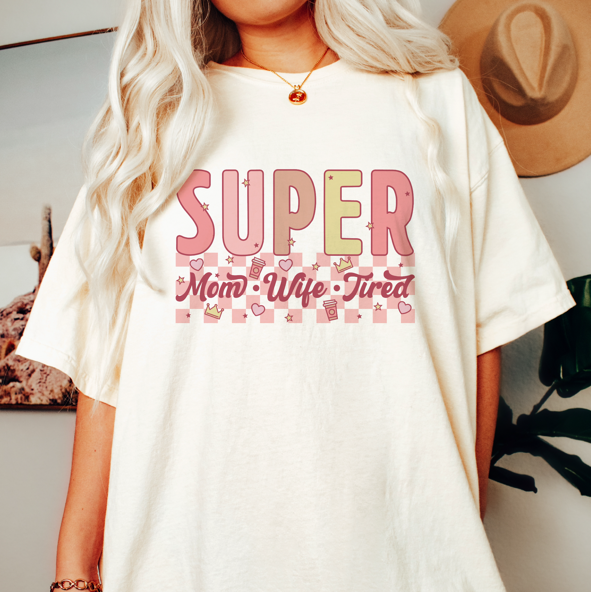 Super Mom Wife Tired SVG PNG | Mother's Day Sublimation | Retro T shirt Design