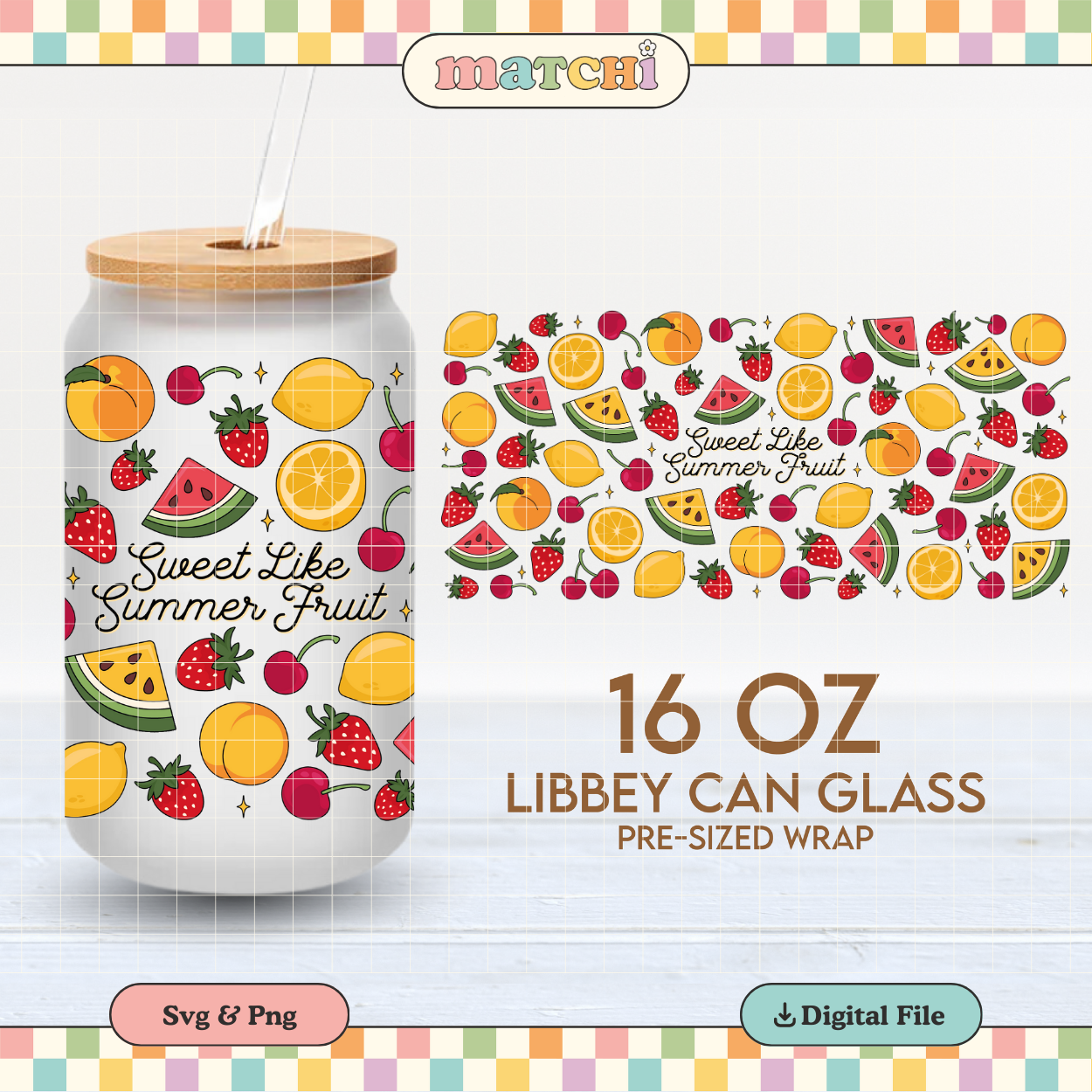 Sweet Like Summer Fruit | 16oz Cup Wrap PNG SVG