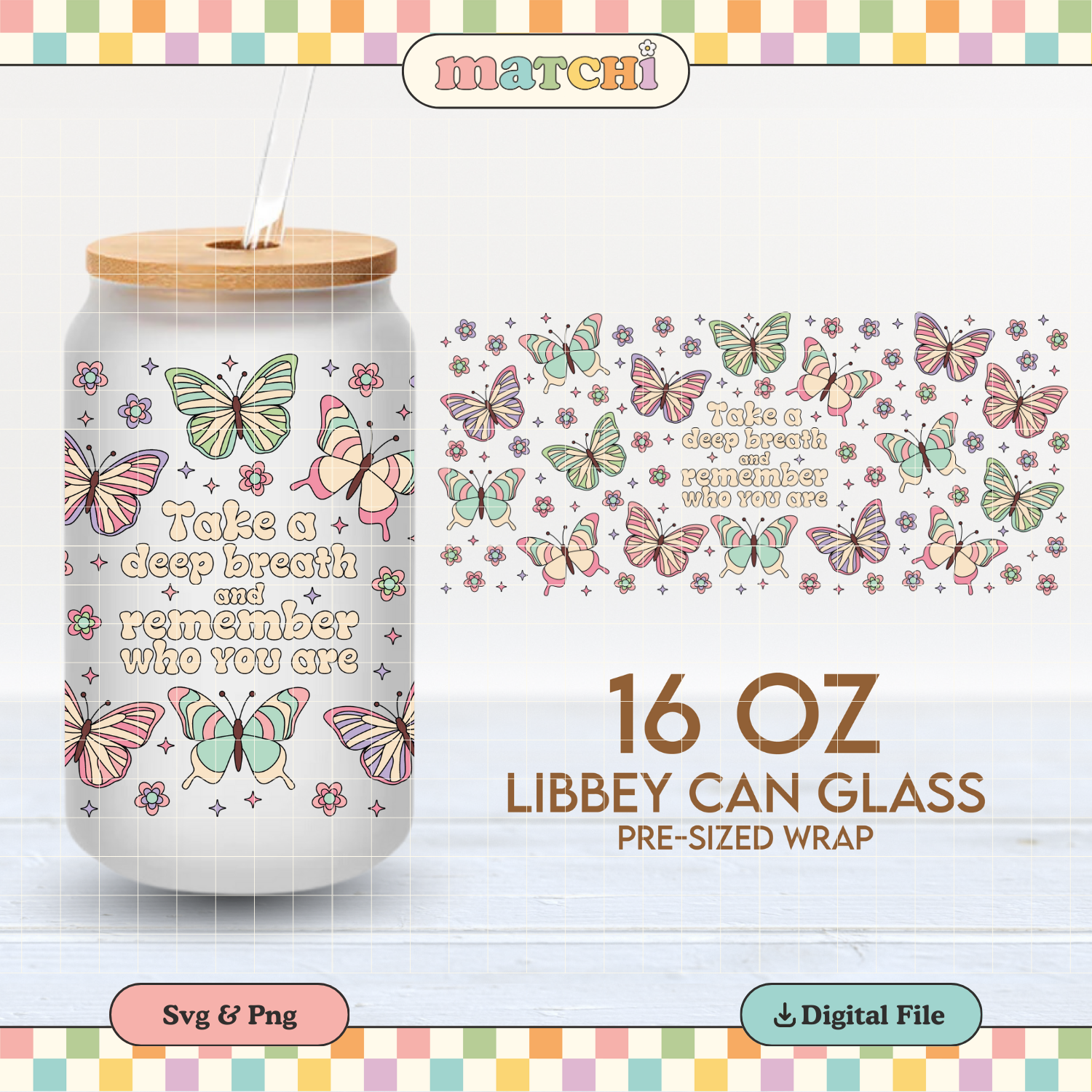 Take a Deep Breath Cup Wrap | Mental Heath 16oz Libbey Can Glass | Self Love PNG SVG