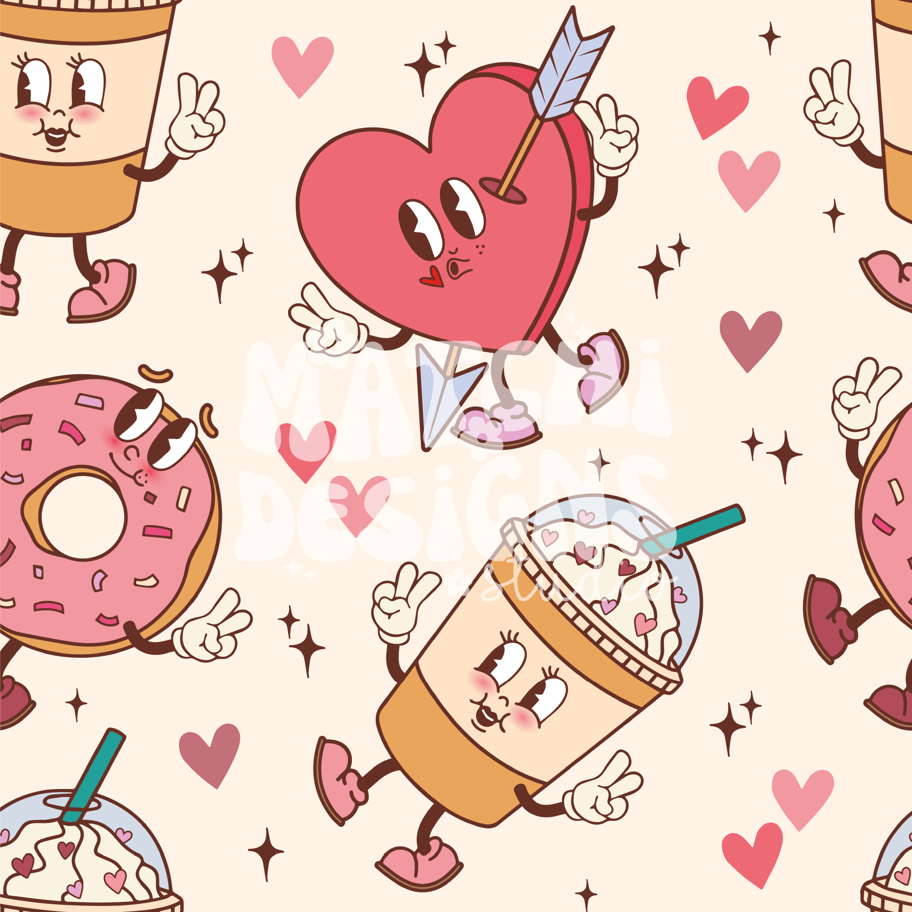 Valentines Cartoon Seamless Pattern, Valentines Day Pattern for Fabric Sublimation