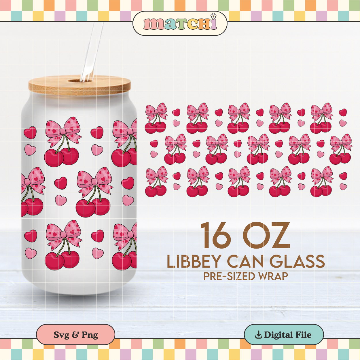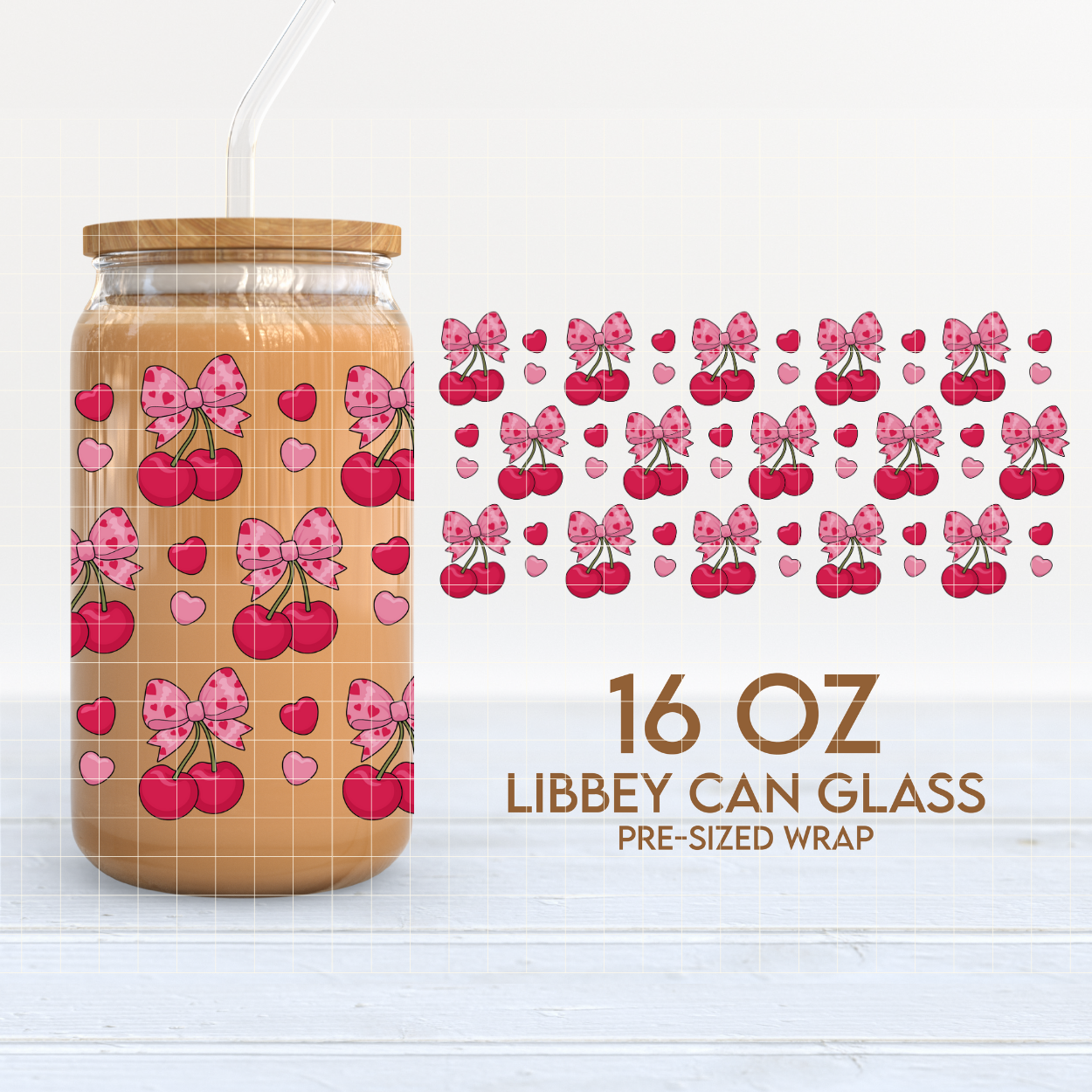 Valentines Cherries Cup Wrap | Coquette Valentines 16oz Libbey Can Glass PNG SVG
